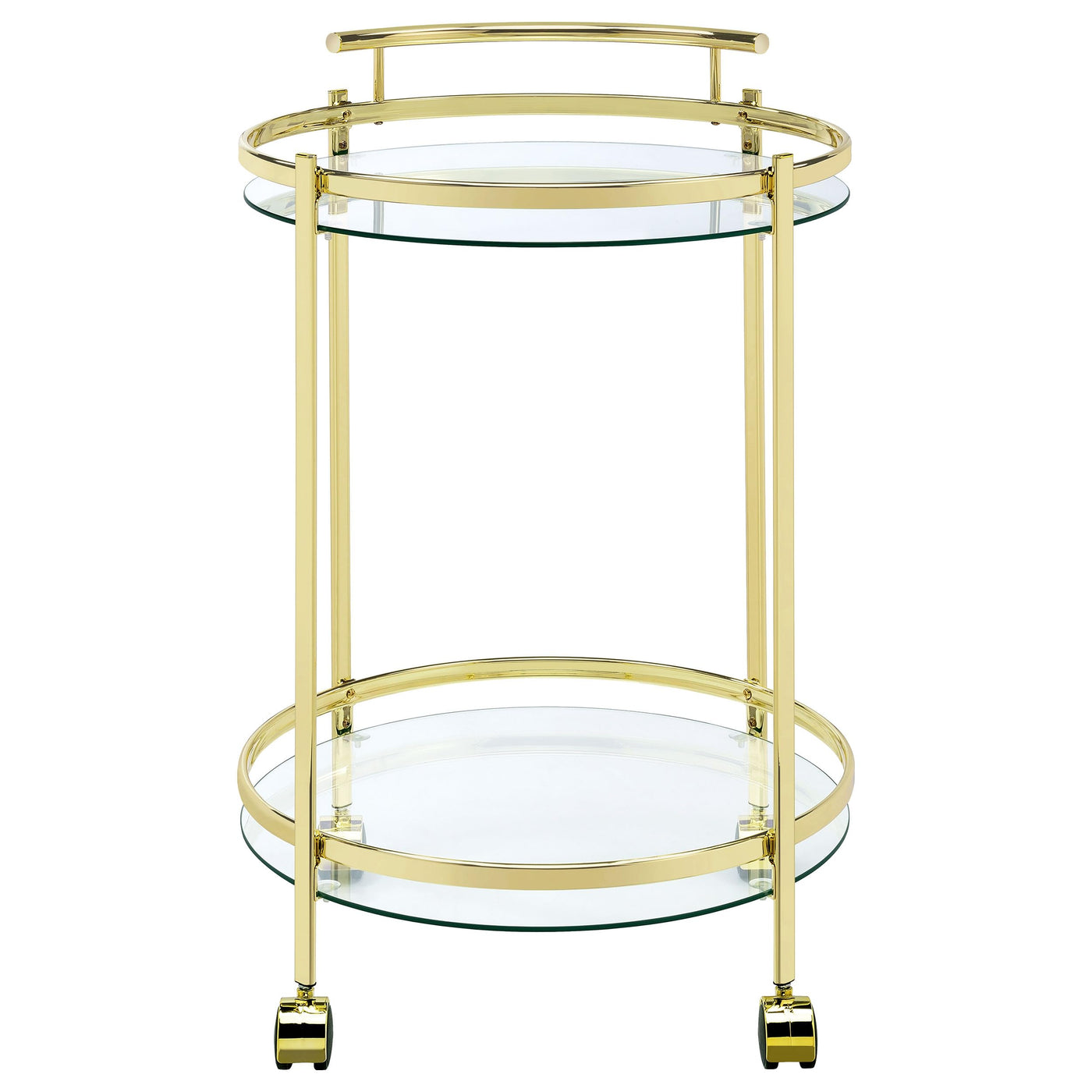 Coaster Home Furnishings Chrissy 2-Tier Round Glass Shelf Metal Bar Cart Brass 181366