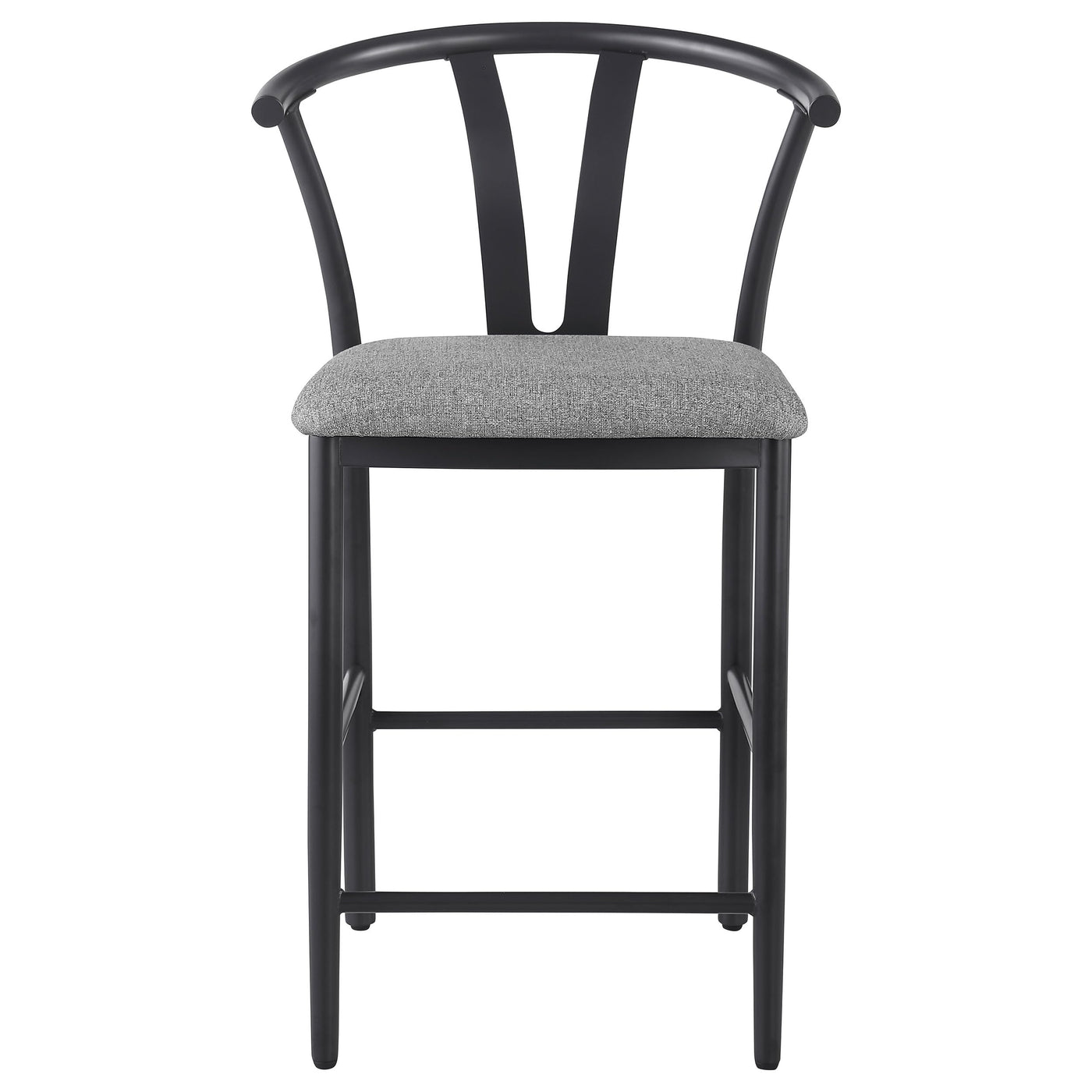 Includes: One (2) counter height chairs | Counter height chair inspired by Danish wishbone design | Durable black powder coated metal frame provides excellent sturdiness and support | Foam-padded seat for added comfort during extended seating | Upholstered in soft, textured grey fabric for a modern look | Perfect for kitchen islands, bars, or counter-height tables