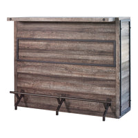 Serve up smile after smile at your next gathering of guests. This handsome, wooden bar unit boasts a bold, rustic design to enliven your space. Five roomy shelves with stemware racks provide plenty of space for your party essentials. A metal footrest is attached to the front, keeping guests comfortable as you show off your mixology skills. Top-quality craftsmanship ensures maximum durability for years of lasting enjoyment.