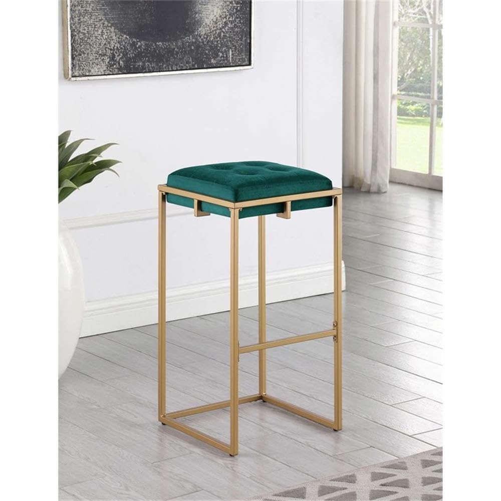 Coaster Home Furnishings Nadia Square Padded Seat Bar Stool (Set of 2) Hunter Green and Gold