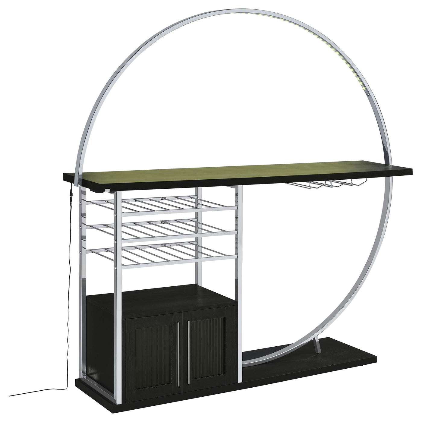 Coaster Home Furnishings Risley 2-Door Circular LED Home Bar with Wine Storage Dark Charcoal