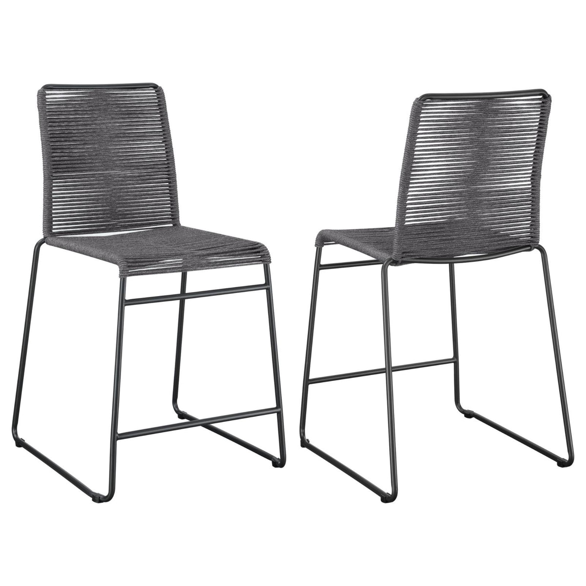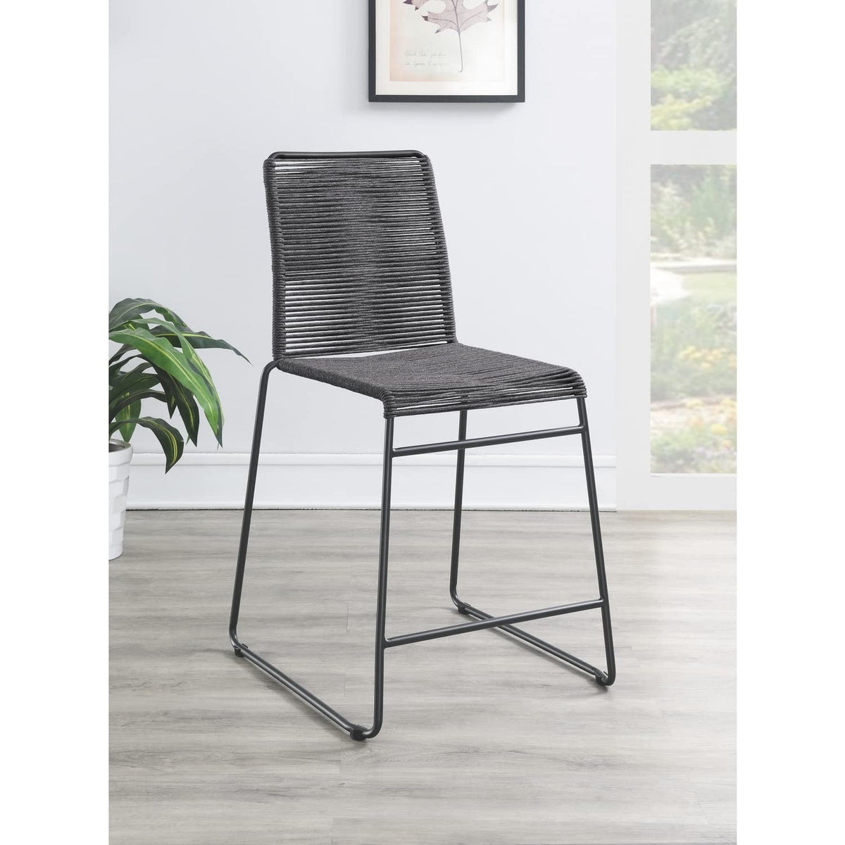 Set of 2 Rope Woven Counter Height Dining Chair in Charcoal and Gunmetal