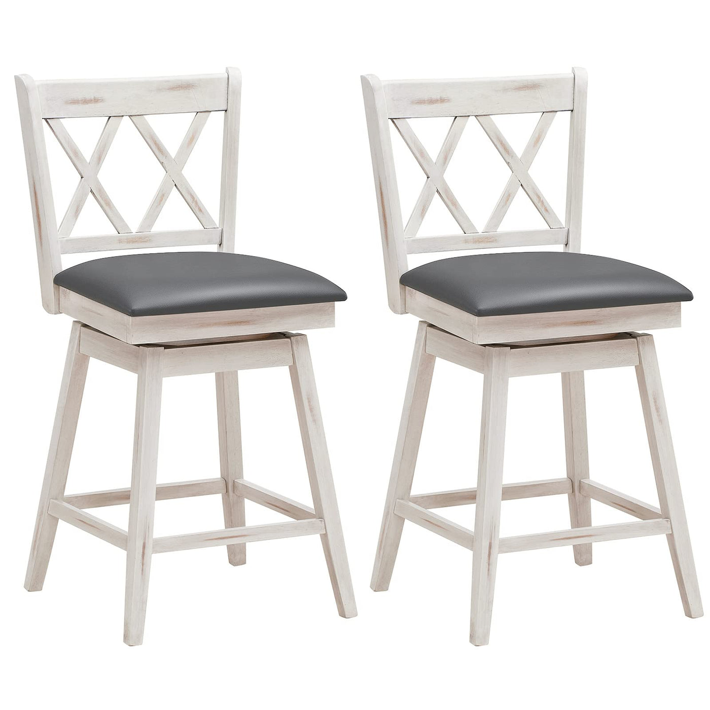 Costway Bar Stool Set Of 2, 360° Swivel Counter Height 25Inch Bar Stool With Foot Rest Upholstered Cushion & Ergonomic Backrest, Sturdy Frame, For Pub, Restaurant, Home (2, Antique White + Grey)
