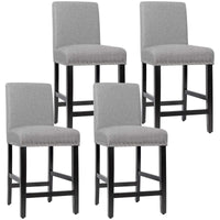 Costway Bar Stools Set Of 4, Upholstered Bar Chairs W/Rubber Wood Legs, Breathable Linen Fabric, High Resilience Sponge, Comfortable Backrest, Padded Seat, For Kitchen Dining Room (Gray, 4)