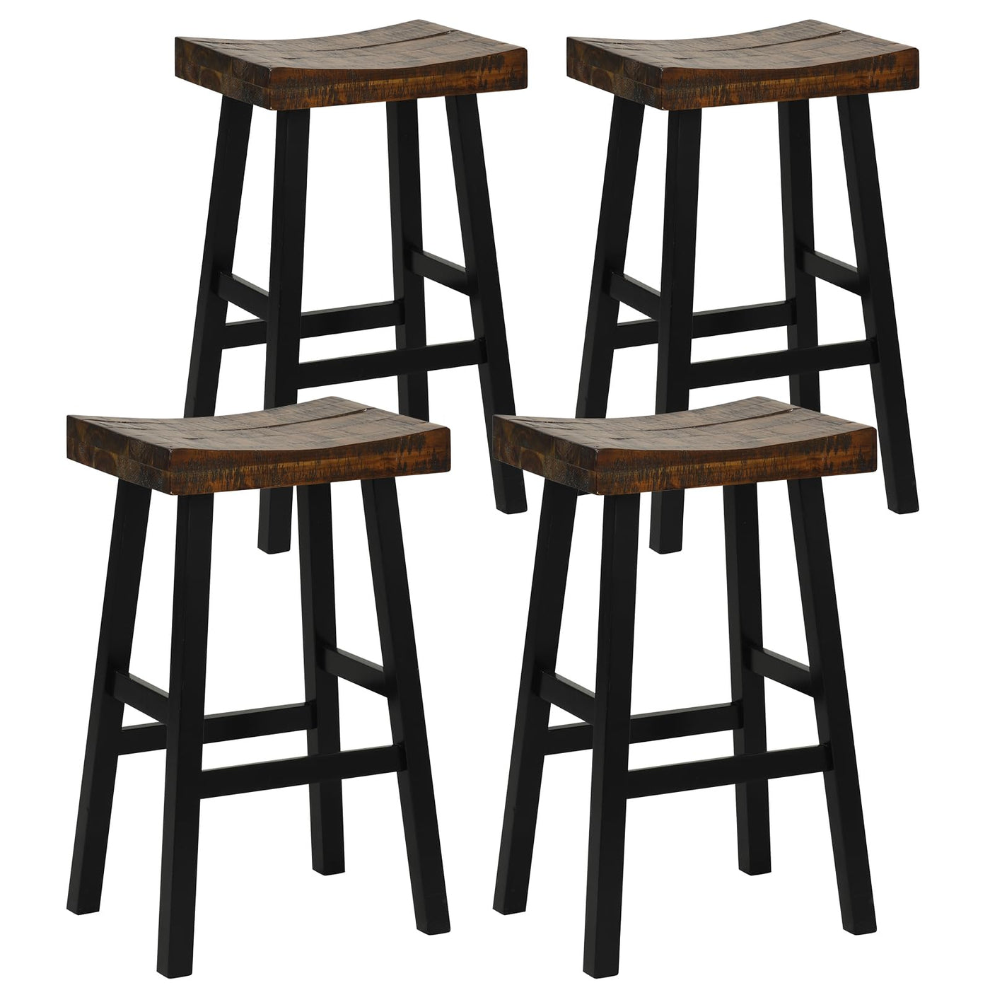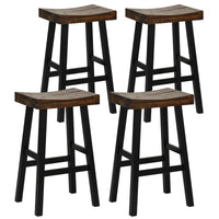 Costway Wooden Saddle Stools Set Of 4, 29-Inch Bar Height Stools With Curved Seat Surface, Rubber Wood, Acacia Wood, Footrests, Kitchen Island Counter Stools For Restaurant Cafe Pub, Brown+Black