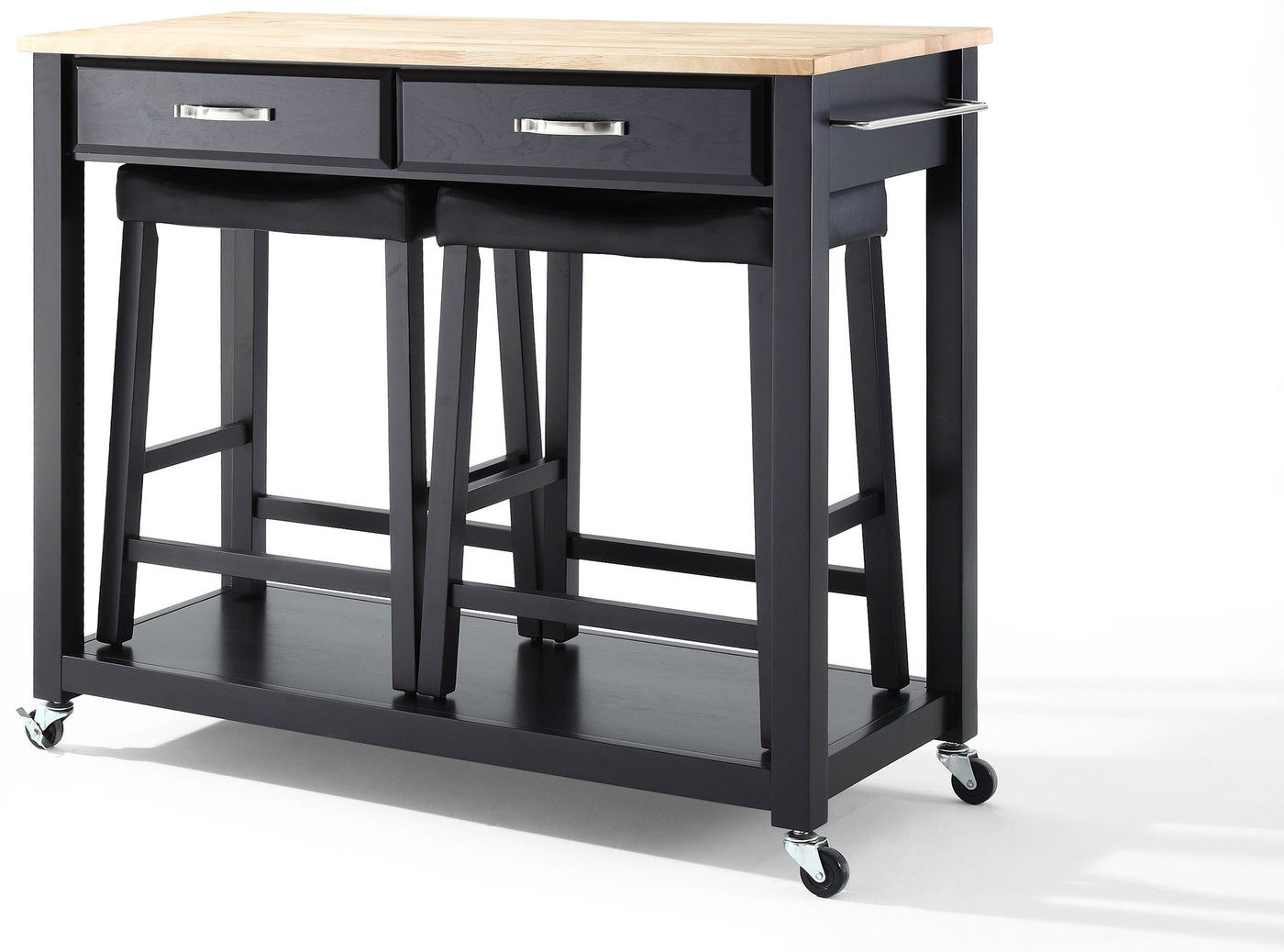 Crosley Furniture Portable Kitchen Cart with Natural Wood Top and 24-inch Upholstered Saddle Stools - Classic Cherry