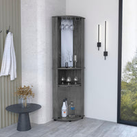 Depot E-Shop Nashville Corner Bar Cabinet Unit With Wine Glass Rack And Lower Cabinet, Smokey Oak