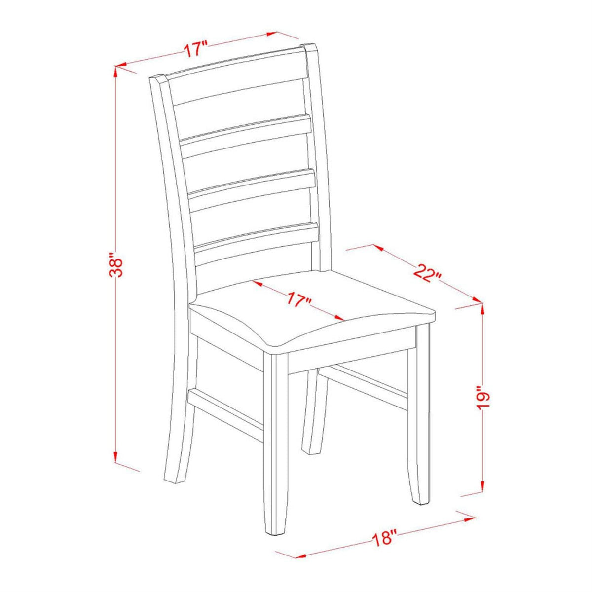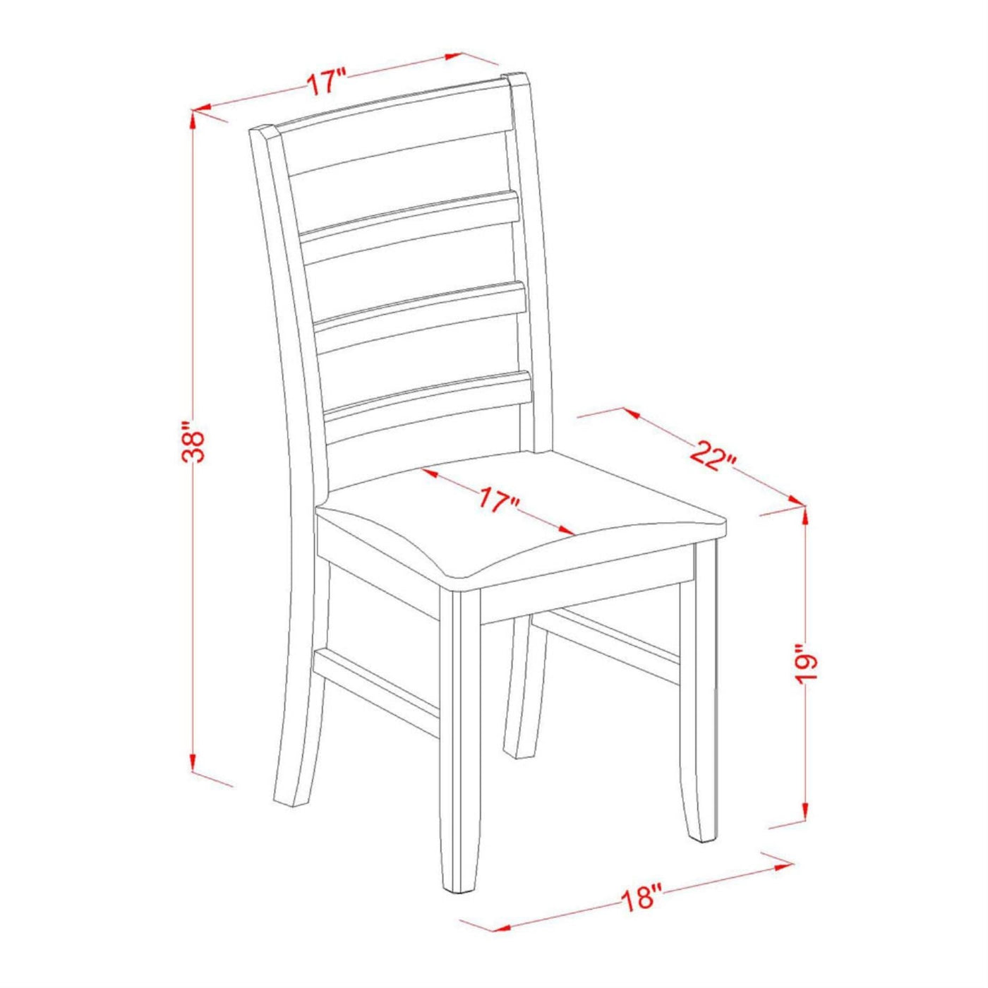 EAST WEST FURNITURE - PFC-BLK-C - DINING CHAIRS SETElevate your family table's appearance with the Innovative Set of 2 Parfait modern dining chairs. Transform your dining experience through these elegant chairs boasting a refined Black Finish. Crafted from durable Asian Hardwood, these chairs feature a graceful ladder-back design and stylish legs, creating a sophisticated color blend that adds a touch of luxury to your living space. Infuse your dining room with trendy seating, elevating the overall ambiance. The comfortable hardwood ladder back offers excellent back support. With a cutting-edge solid wood structure, Linen Fabric Upholstery seat, ladder-back, and robust Stylish Legs, these chairs bring innovation, stability, and comfort. Easy to carry, clean, assemble, and arrange, their classic design fits any decor, while the cushioned smooth Linen Fabric upholstery ensures comfort.PRODUCT FEATURES: Fabric: Linen Fabric Cushion Material: Foam Leg and Back Color: Black Dimensions: Length: 22; Width: 18; Height: 38.Includes: Set of 2 Kitchen Dining Chairs