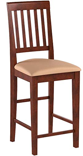 EAST WEST FURNITURE - VNS-MAH-C - COUNTER HEIGHT DINING CHAIRS SET OF 2Elevate the allure of your dining area with a touch of versatility by introducing the Innovative Set of 2 Vernon Modern Counter Height Chairs. These contemporary seating options boast a timeless design that elevates the aesthetic appeal of any dining space. Enhance your dining room experience by incorporating chic seating alternatives that exude consistent style. This dining chair epitomizes sophistication through its meticulously crafted Mahogany construction, seamlessly harmonizing with its design. The application of a Mahogany finish to the chair's legs adds a touch of contemporary elegance, thereby augmenting the overall visual appeal of any dining environment. The elevated height chairs with slatted backs and elegant tall legs are expertly crafted from high-quality Asian solid wood, commonly referred to as Rubber Wood, ensuring both stability and longevity for these counter height dining chairs. We believe that quality furniture should withstand the test of time and not necessitate replacement on an annual basis. With its revolutionary layout, durable solid wood structure, comfortable Linen Fabric Upholstery seat, Mahogany slatted back, and stylish high legs, this seating solution offers an innovative perspective to your living area. It provides excellent stability, comfortable support for your back, and an exceptional sitting experience. Furthermore, these upholstered chairs are designed for ease of transport, effortless cleaning, and straightforward assembly, ensuring a hassle-free experience for our valued customers.PRODUCT FEATURES: Frame Material: Rubber Wood Frame Color: Mahogany Fabric Material: Linen Fabric Cushion Material: Foam Dining Chair Dimensions: Length: 20; Width: 18; Height: 42.Includes: Set of 2 Counter Height Chairs