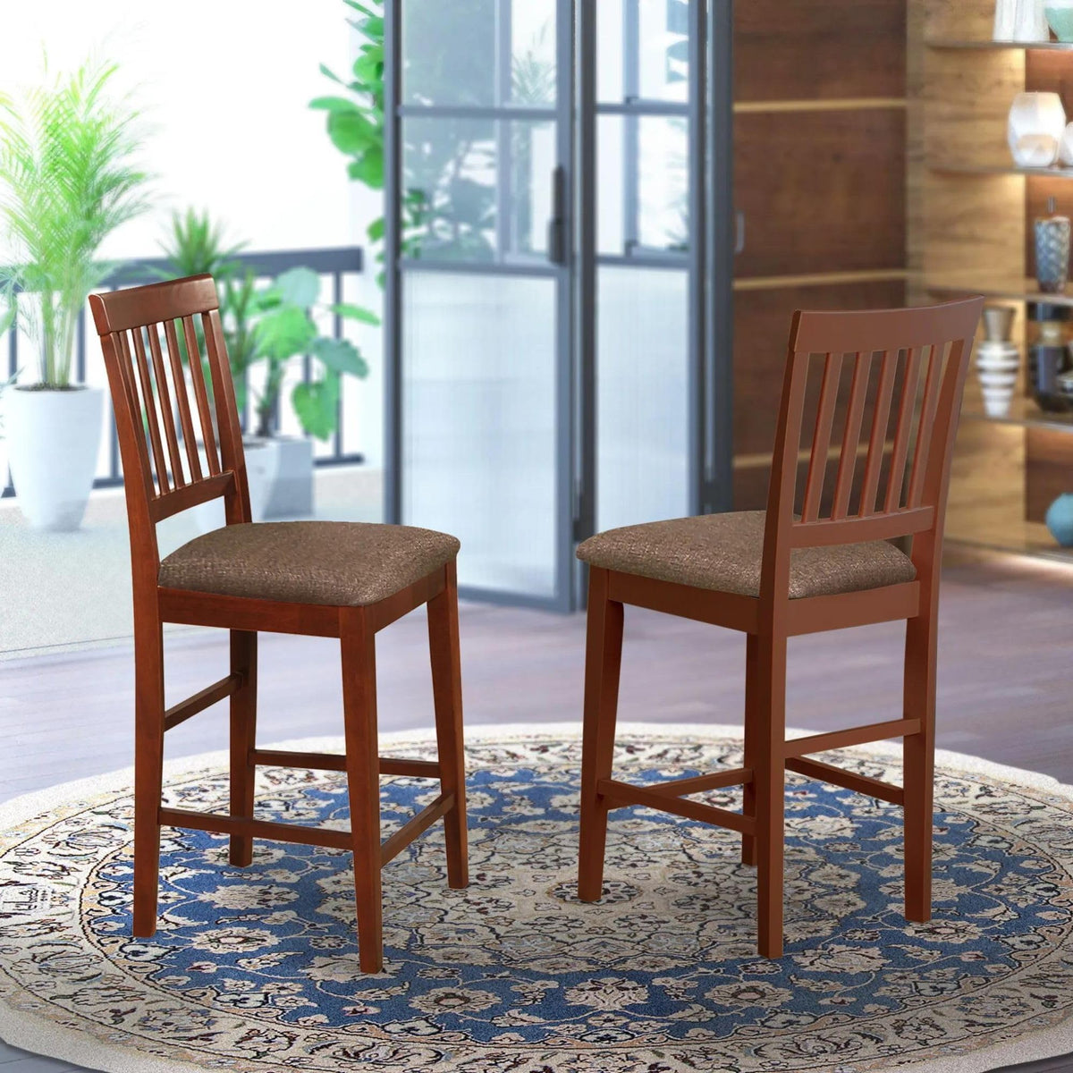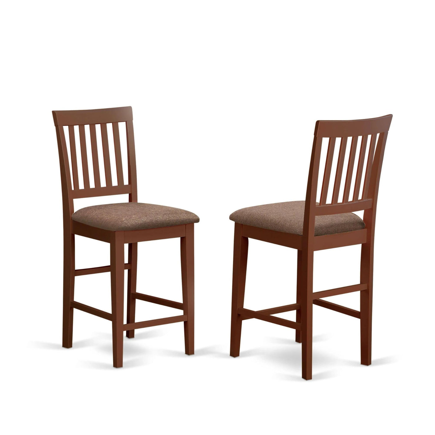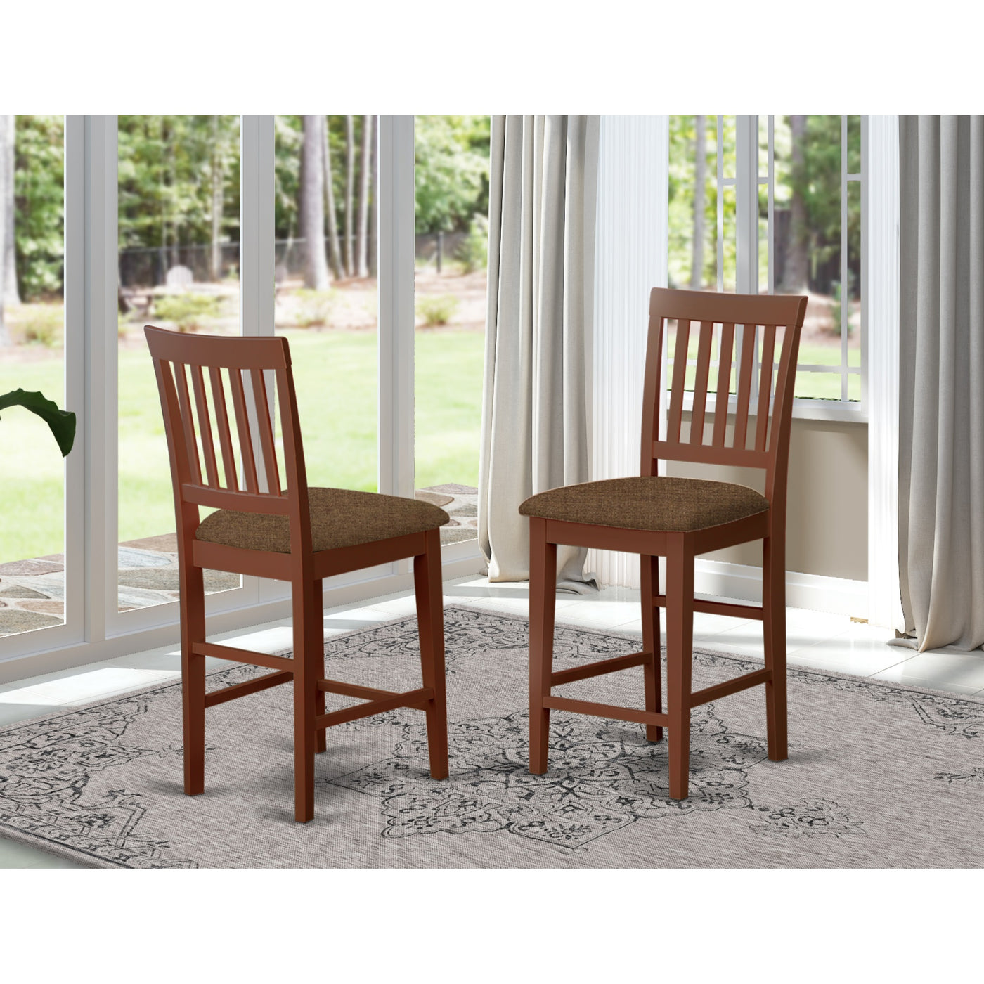 East West Furniture Vernon Counter Stool-Linen Fabric Pub Height Wooden Chairs, Set of 2, Mahogany