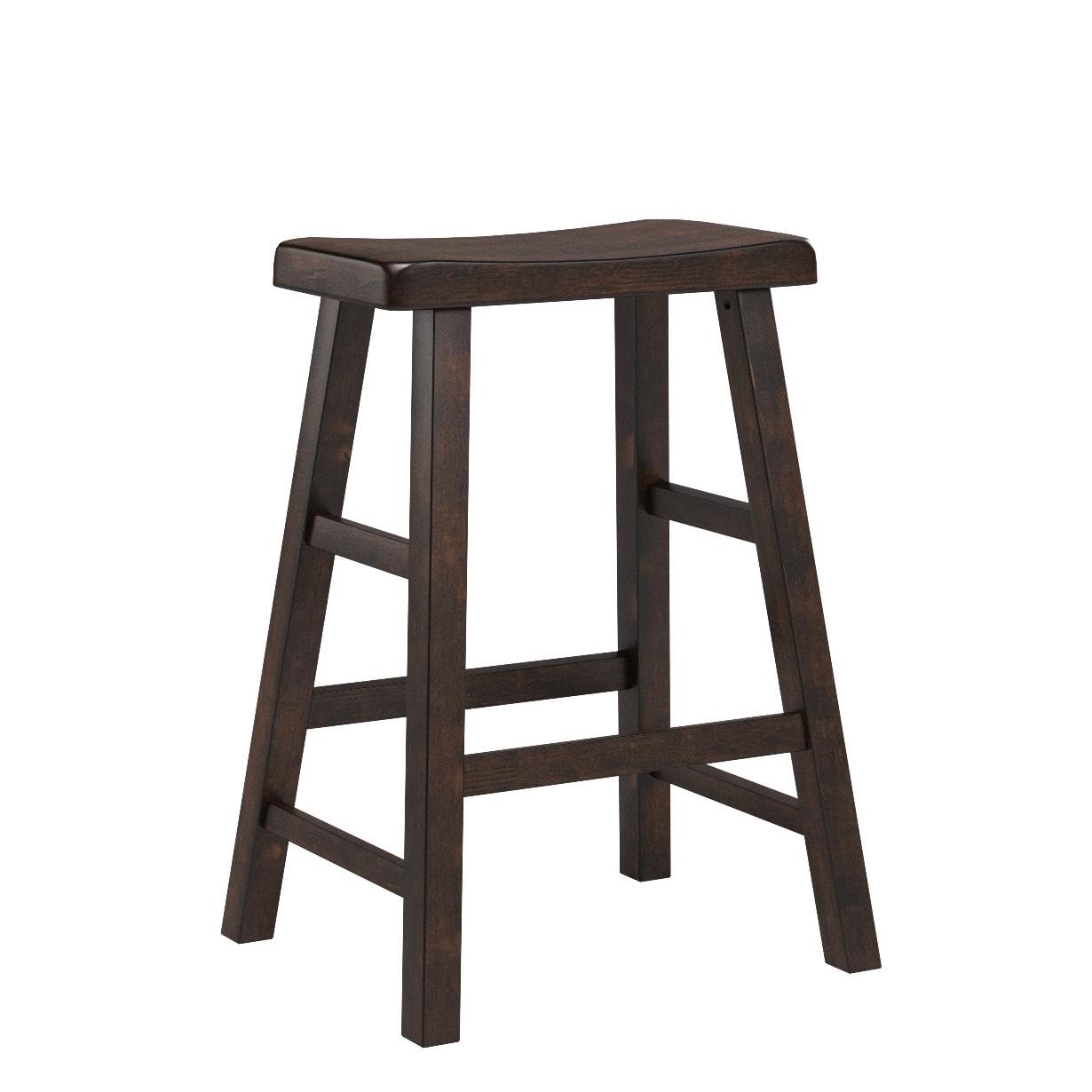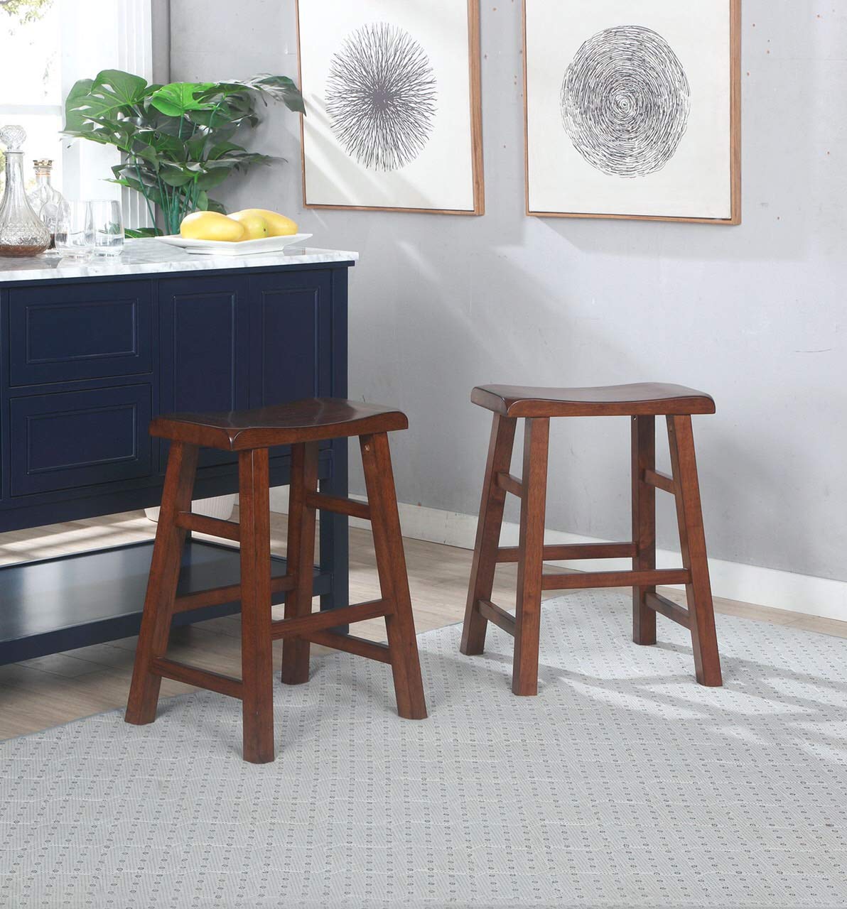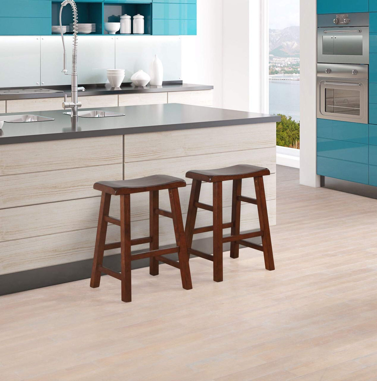 Ehemco Heavy-Duty Solid Wood Saddle Seat Kitchen Counter Height Barstools, 24 Inches, Walnut, Set Of 2