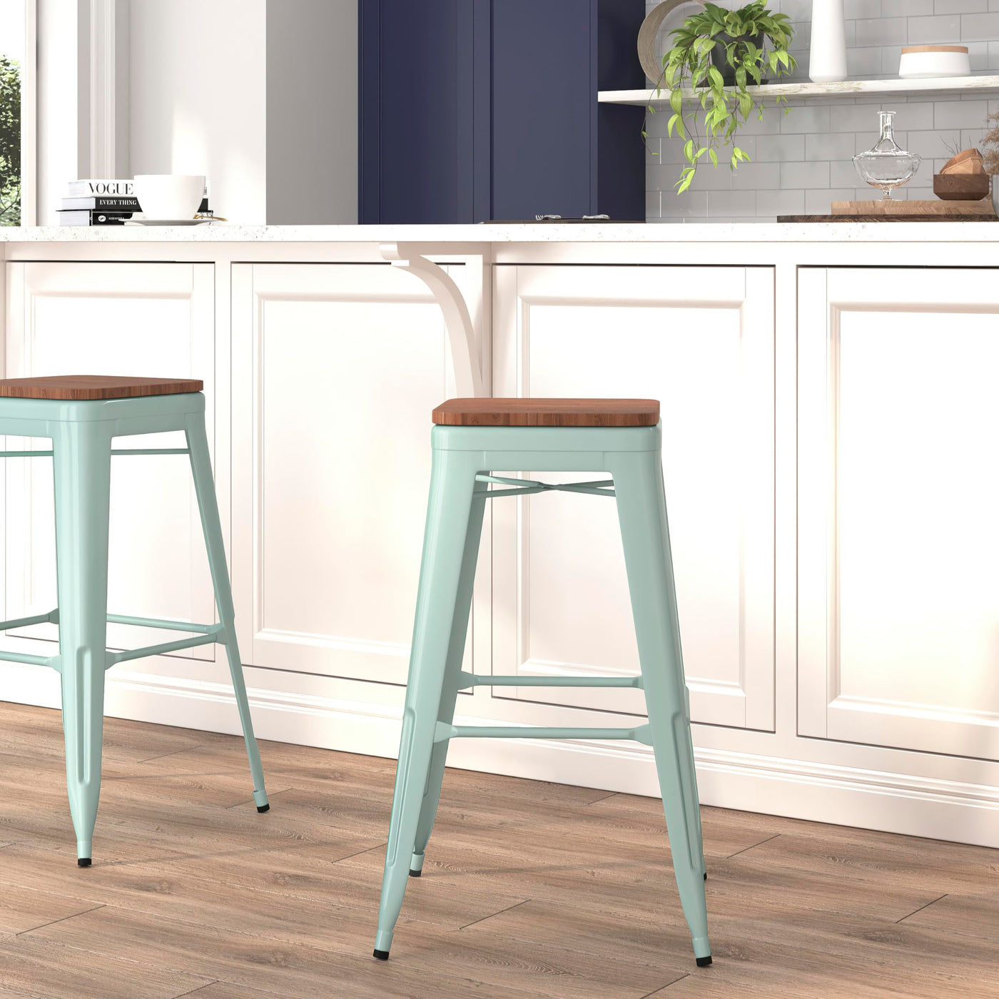 Flash Furniture 30' High Backless Mint Green Barstool With Square Wood Seat
