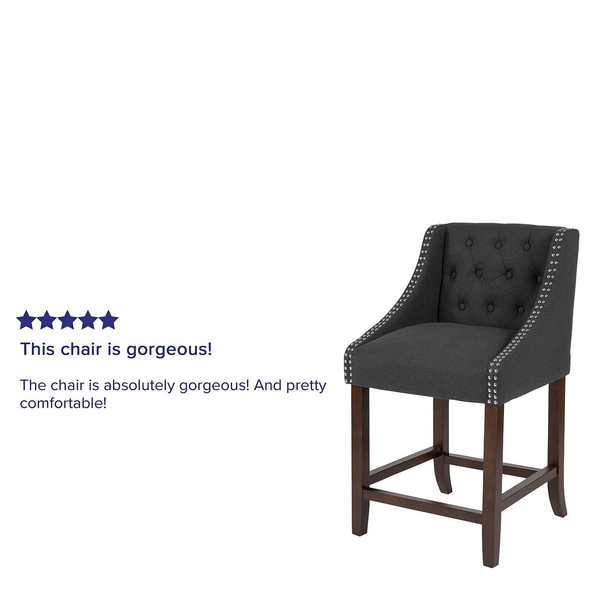 Flash Furniture Carmel Series 24" High Transitional Tufted Walnut Counter Height Stool With Accent Nail Trim In Charcoal Fabric