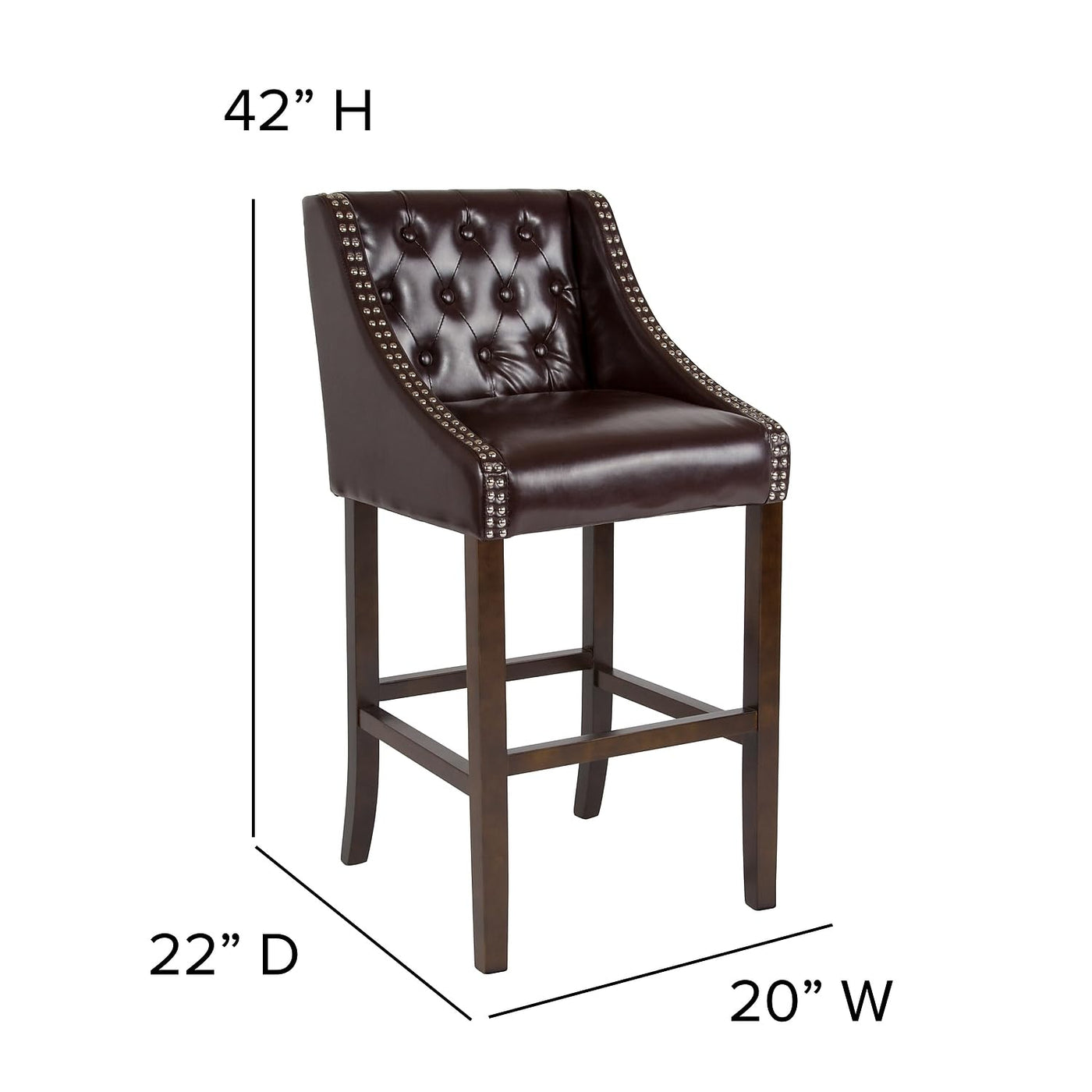 Flash Furniture Carmel Series 30' High Transitional Tufted Walnut Barstool With Accent Nail Trim In Brown Leathersoft