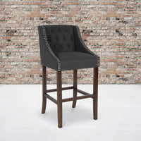 Flash Furniture Carmel Series 30' High Transitional Tufted Walnut Barstool With Accent Nail Trim In Charcoal Fabric