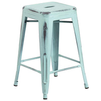 Flash Furniture Commercial Grade 24' High Backless Distressed Green-Blue Metal Indoor-Outdoor Counter Height Stool