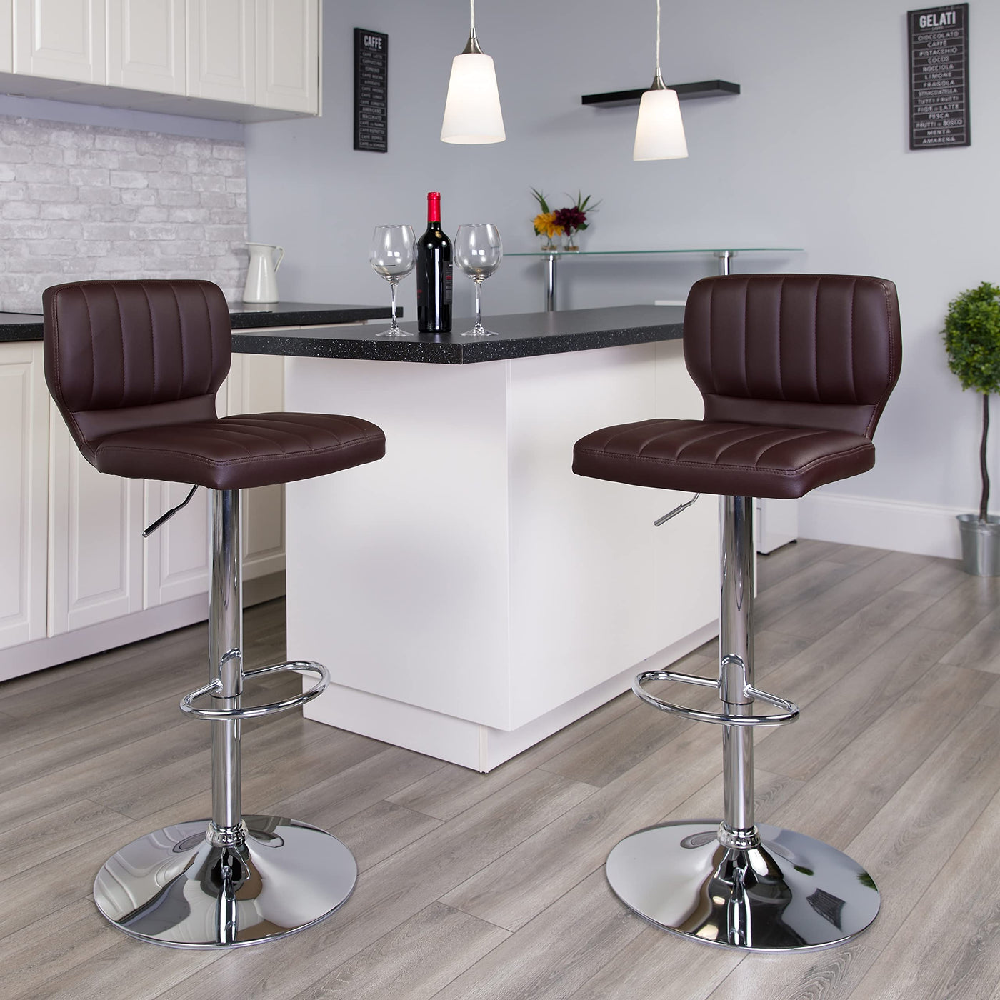 Flash Furniture Contemporary Brown Vinyl Adjustable Height Barstool with Vertical Stitch Back and Chrome Base (Pack of 1)