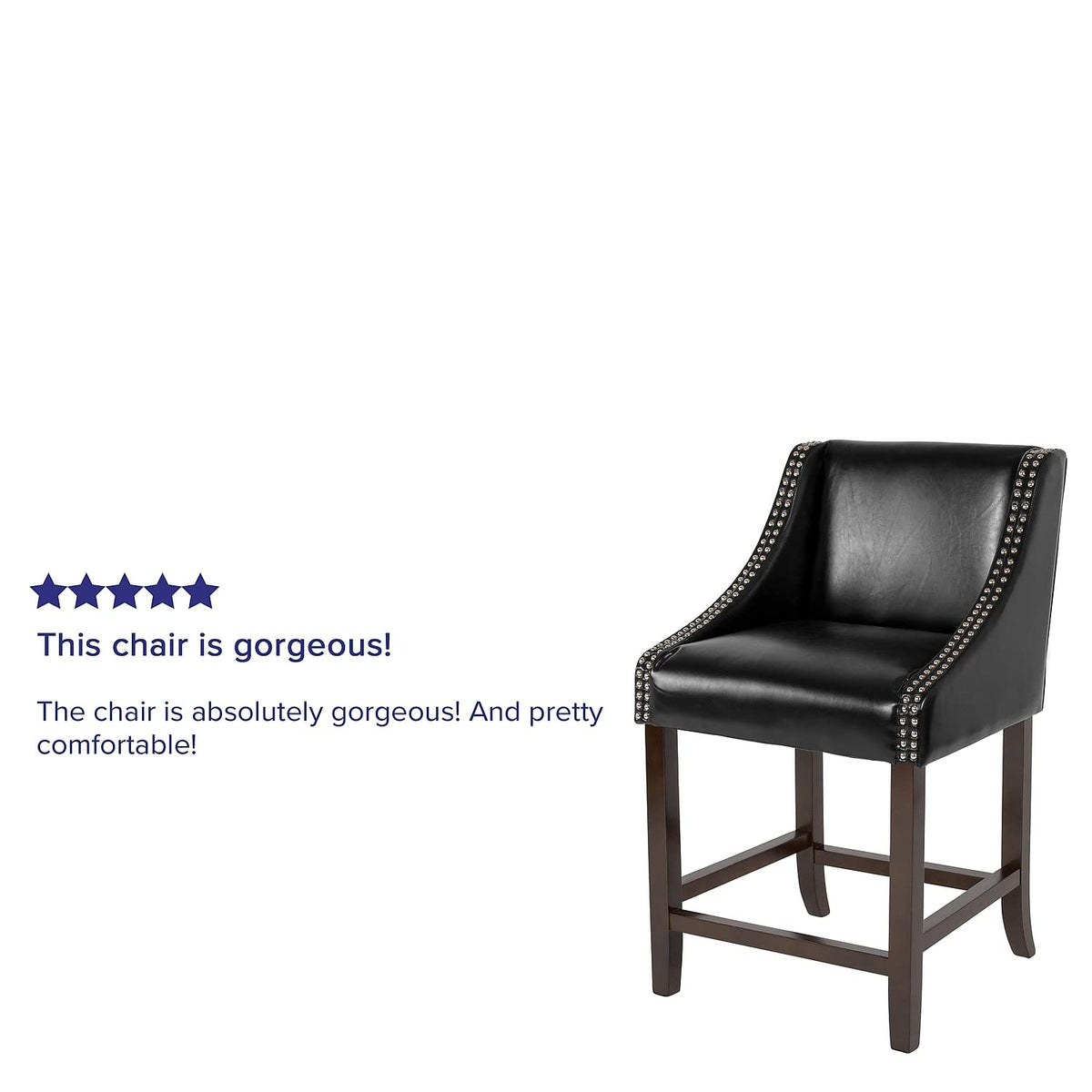 Bring Warmth And Comfort To Your Home While Adding Some World Class Elegance With This Classically Sophisticated Black Counter Stool. Have Breakfast At Your Kitchen Island Or Hang Out With Friends Around The Dining Room Table In Style. Boasting Soft And Durable Leathersoft Upholstery Paired With Decorative Nail Head Trim, This Counter Height Stool Lends A Touch Of Old World Style And Comfort To Any Environment.When Hosting Guests The Last Thing You Want To Worry About Is A Wobbly Chair. The Solid Wood Frame And Legs Provide A Sturdy Base For This Dining Stool That Will Hold Up To 300 Lbs Weight Capacity. An Integrated Footrest Gives Your Feet A Comfortable Place To Rest And Relieves Pressure From Your Legs. The Gently Curving Arms Add A Touch Of Whimsy To This Upholstered Stool And The Deep Seat, Featuring Cal 117 Fire Retardant Foam, Is An Invitation To Lounge, Relax And Enjoy The Atmosphere.Enjoy The Comforts Of This Full Back Stool Anywhere Around The Home. Spills Or Soil Can Be Quickly Cleaned With Water And A Neutral Detergent. To Ensure Smooth Movement And Protection Of Hard Flooring Surfaces, Glides Have Been Added.