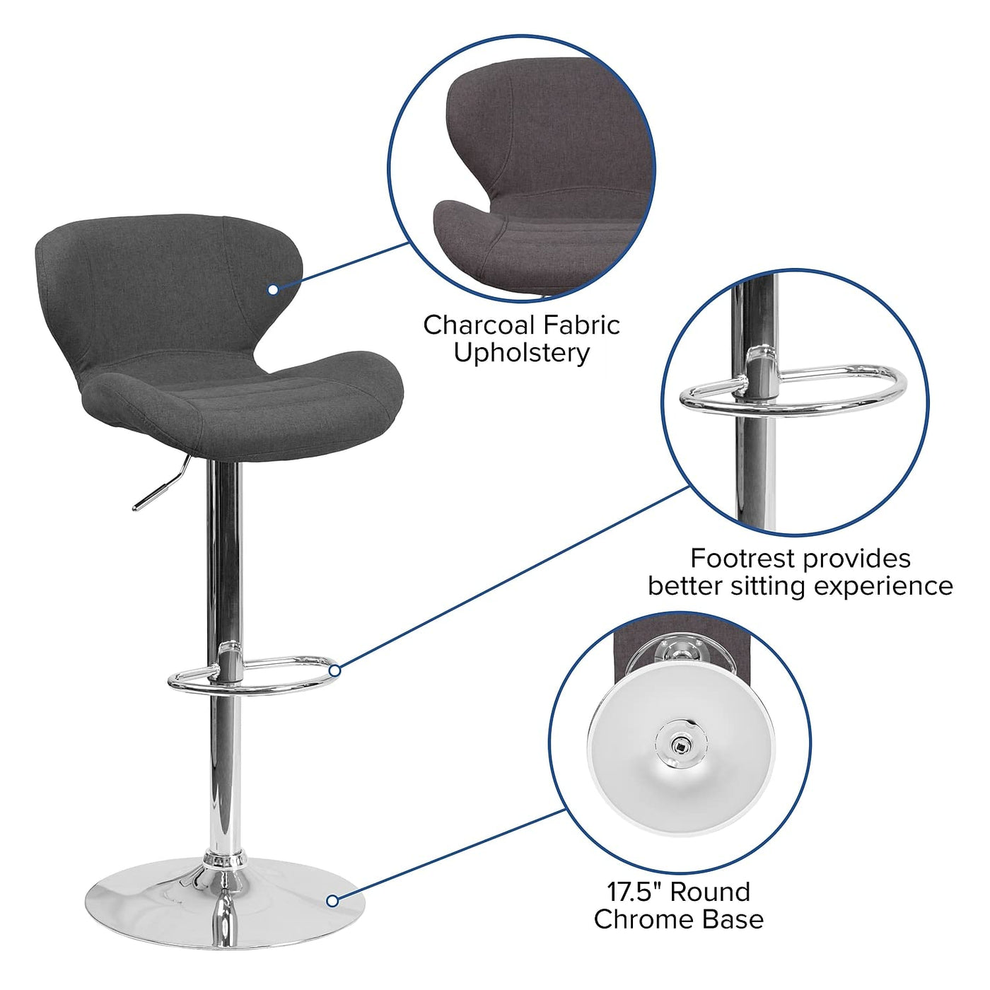 Flash Furniture Contemporary Charcoal Fabric Adjustable Height Barstool with Curved Back and Chrome Base