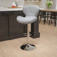Flash Furniture Contemporary Gray Fabric Adjustable Height Barstool with Curved Back and Chrome Base