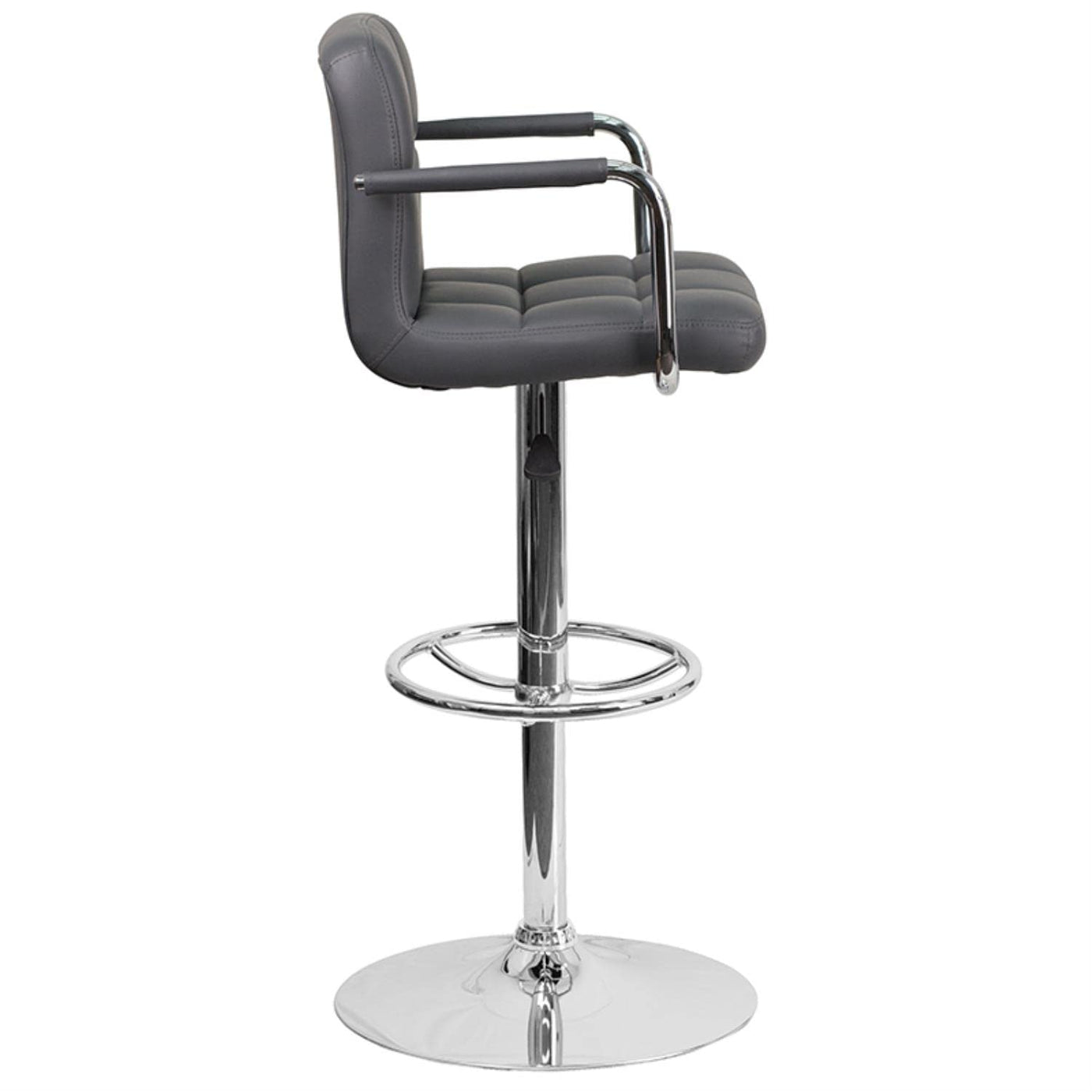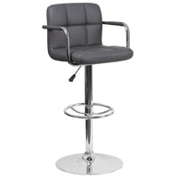 Flash Furniture Contemporary Gray Quilted Vinyl Adjustable Height Barstool with Arms and Chrome Base