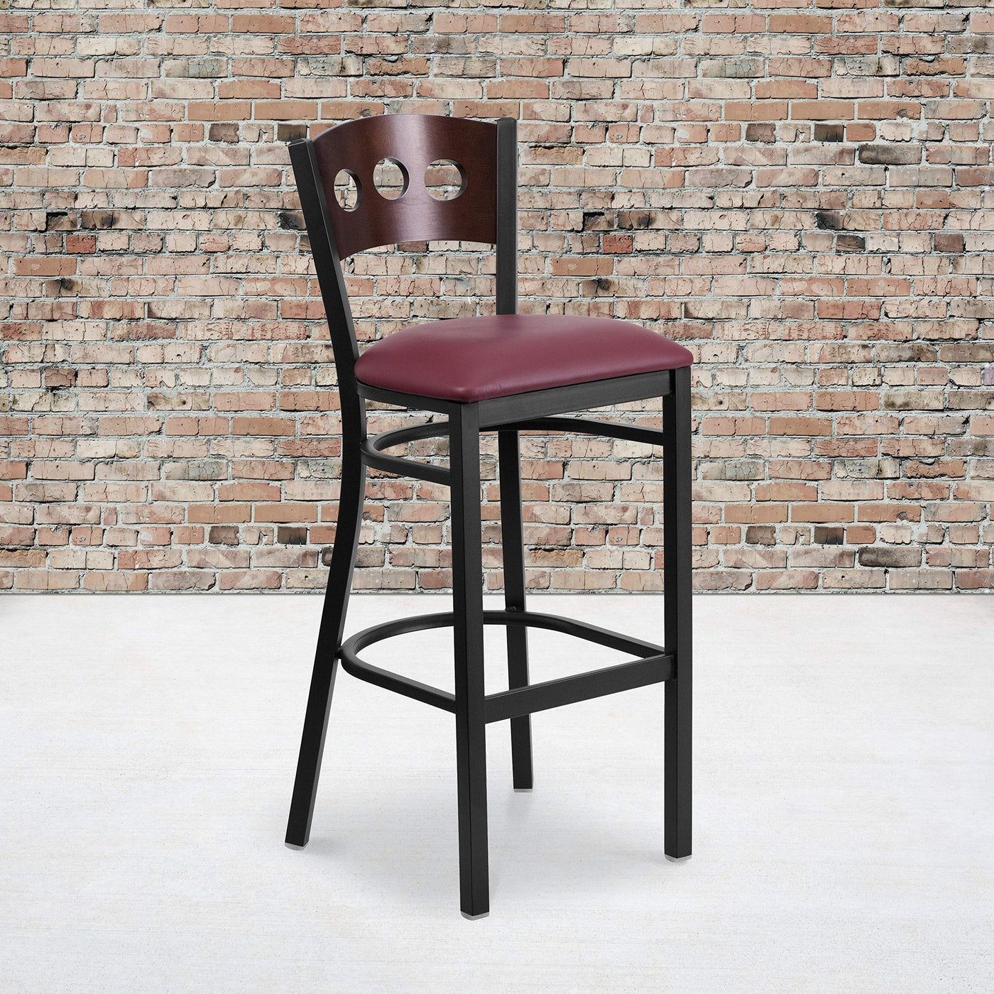 Flash Furniture HERCULES Series Black 3 Circle Back Metal Restaurant Barstool - Walnut Wood Back, Burgundy Vinyl Seat