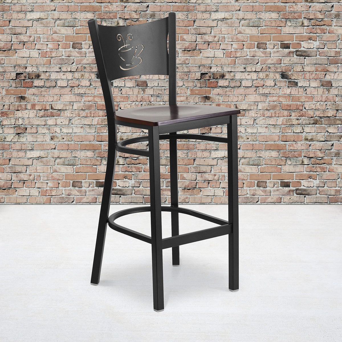 Flash Furniture HERCULES Series Black Coffee Back Metal Restaurant Barstool - Walnut Wood Seat