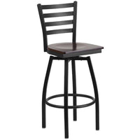 Flash Furniture HERCULES Series Black Ladder Back Swivel Metal Barstool - Walnut Wood Seat