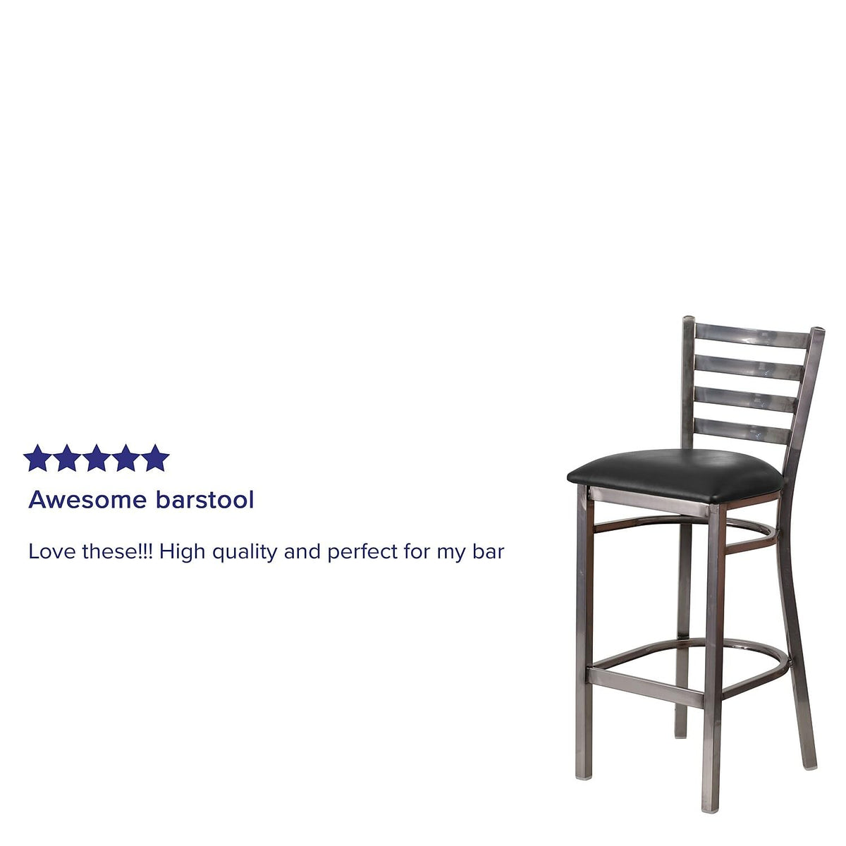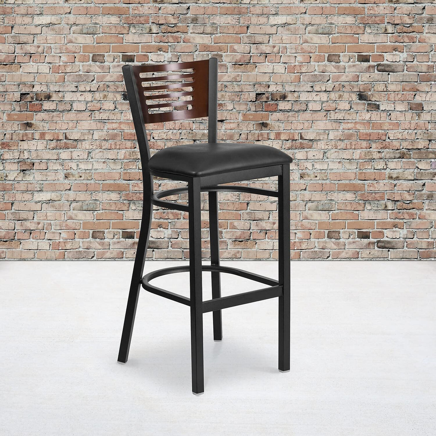 Flash Furniture HERCULES Series Black Slat Back Metal Restaurant Barstool - Walnut Wood Back, Black Vinyl Seat