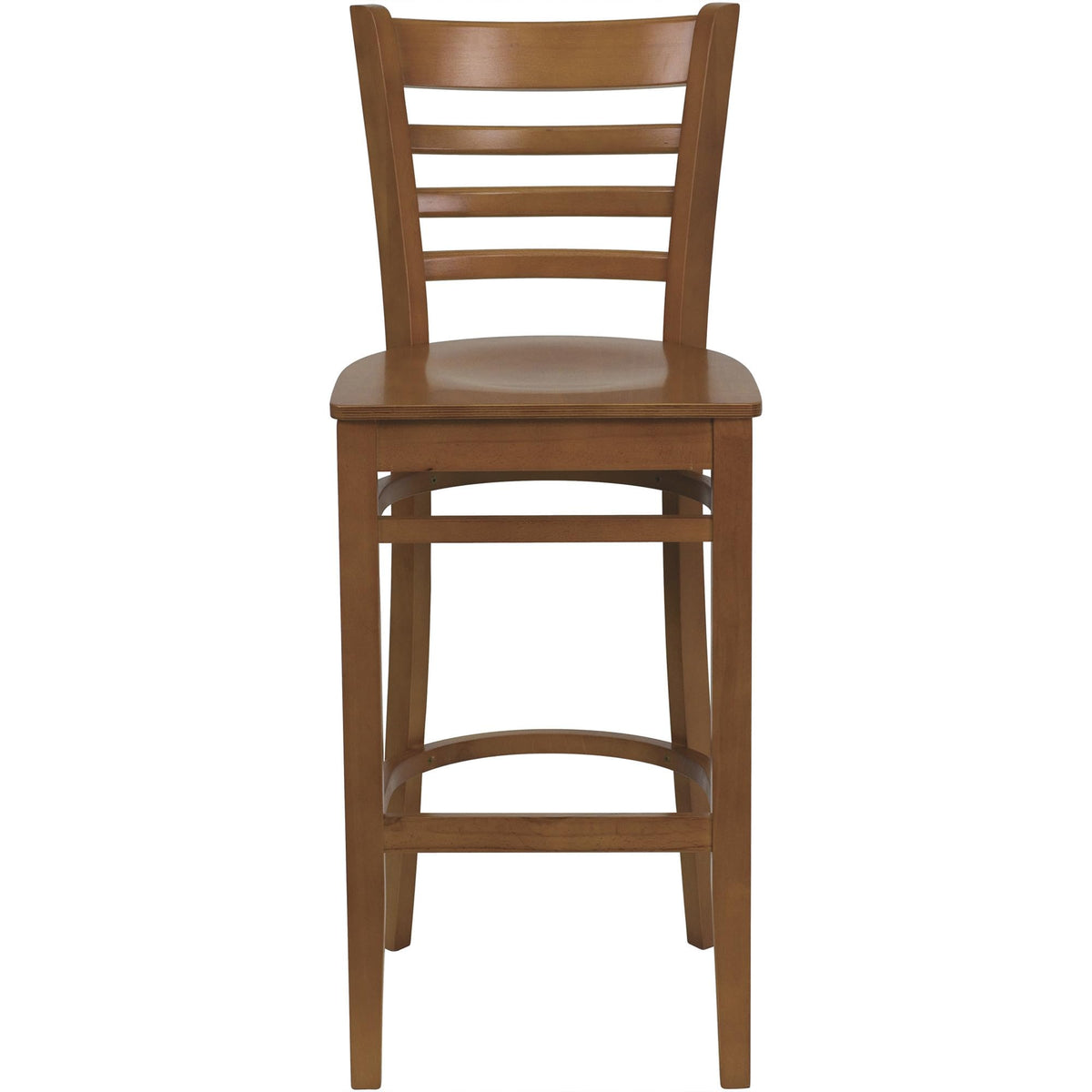 Create a first-rate dining experience by offering your patrons great food, service and attractive furnishings. This classic cherry wood bar stool will offer guests a warm, inviting look when entering your establishment. This chair will make an attractive addition to your restaurant, pool hall, lounge, bar or other high traffic venue. This stool is easy to clean, which is an important aspect when it comes to a business. This bar stool was designed to withstand the daily rigors in the hospitality industry, but will also provide a cozy, intimate quality to your home. The ladder back design and walnut cherry wood finished seat will keep your guests comfortable. The durable frame is stabilized with mortise and tenon construction with metal screw reinforcements. Two curved support bars provide extra stability and include a footrest for improved posture. The floor glides help protect your floors and ensure smooth gliding. This charmingly styled chair is a must have, whether used in the home or your commercial business.