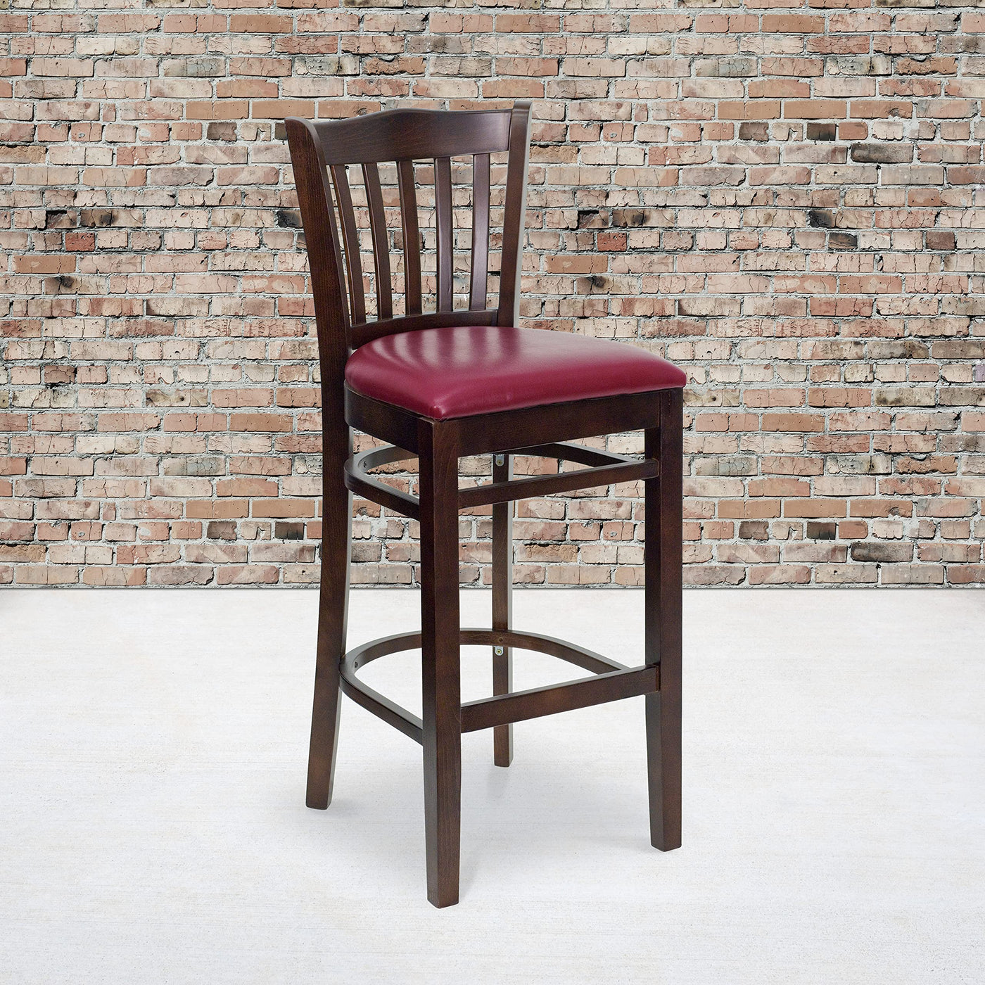 Flash Furniture HERCULES Series Vertical Slat Back Walnut Wood Restaurant Barstool - Burgundy Vinyl Seat