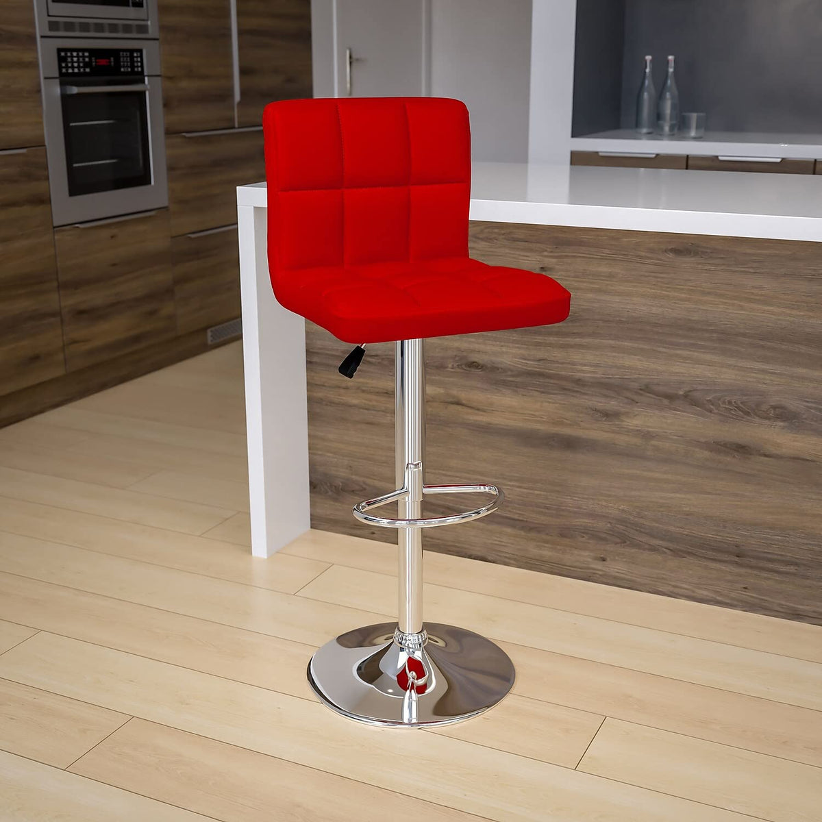 Flash Furniture Kathleen Contemporary Red Quilted Vinyl Adjustable Height Barstool with Chrome Base