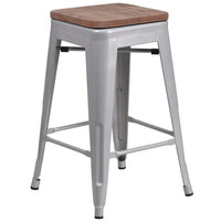 Flash Furniture Lily 24' High Backless Silver Metal Counter Height Stool With Square Wood Seat (Pack Of 1)