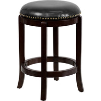 Flash Furniture Margaret 24'' High Backless Cappuccino Wood Counter Height Stool With Black Leathersoft Swivel Seat