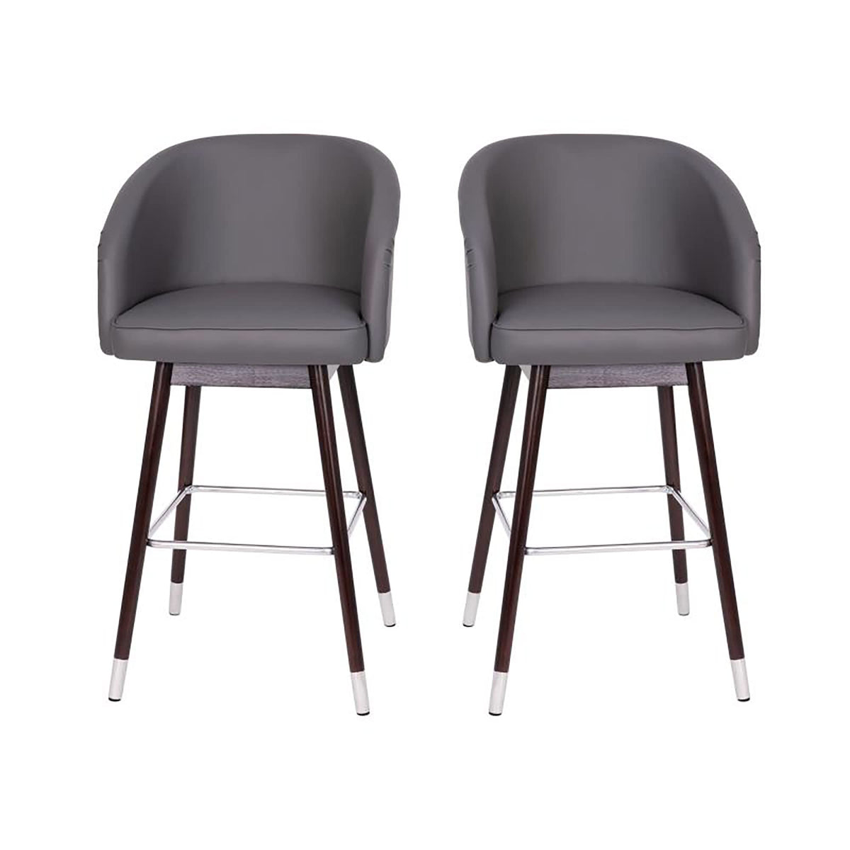 Flash Furniture Margo 30' Commercial Grade Mid-Back Modern Barstool With Walnut Finish Beechwood Legs And Curved Back, Gray Leathersoft/Silver Accents (Pack Of 2)