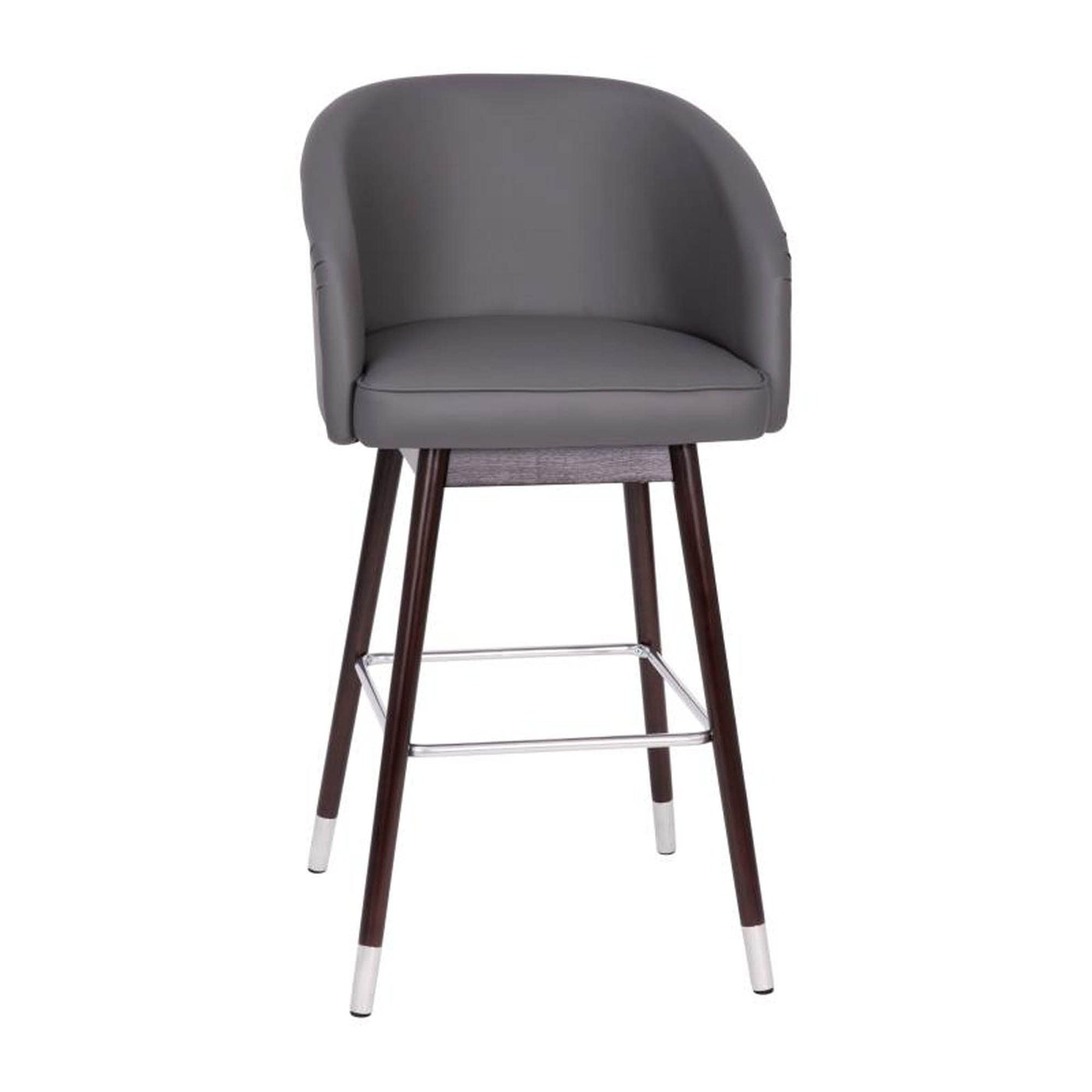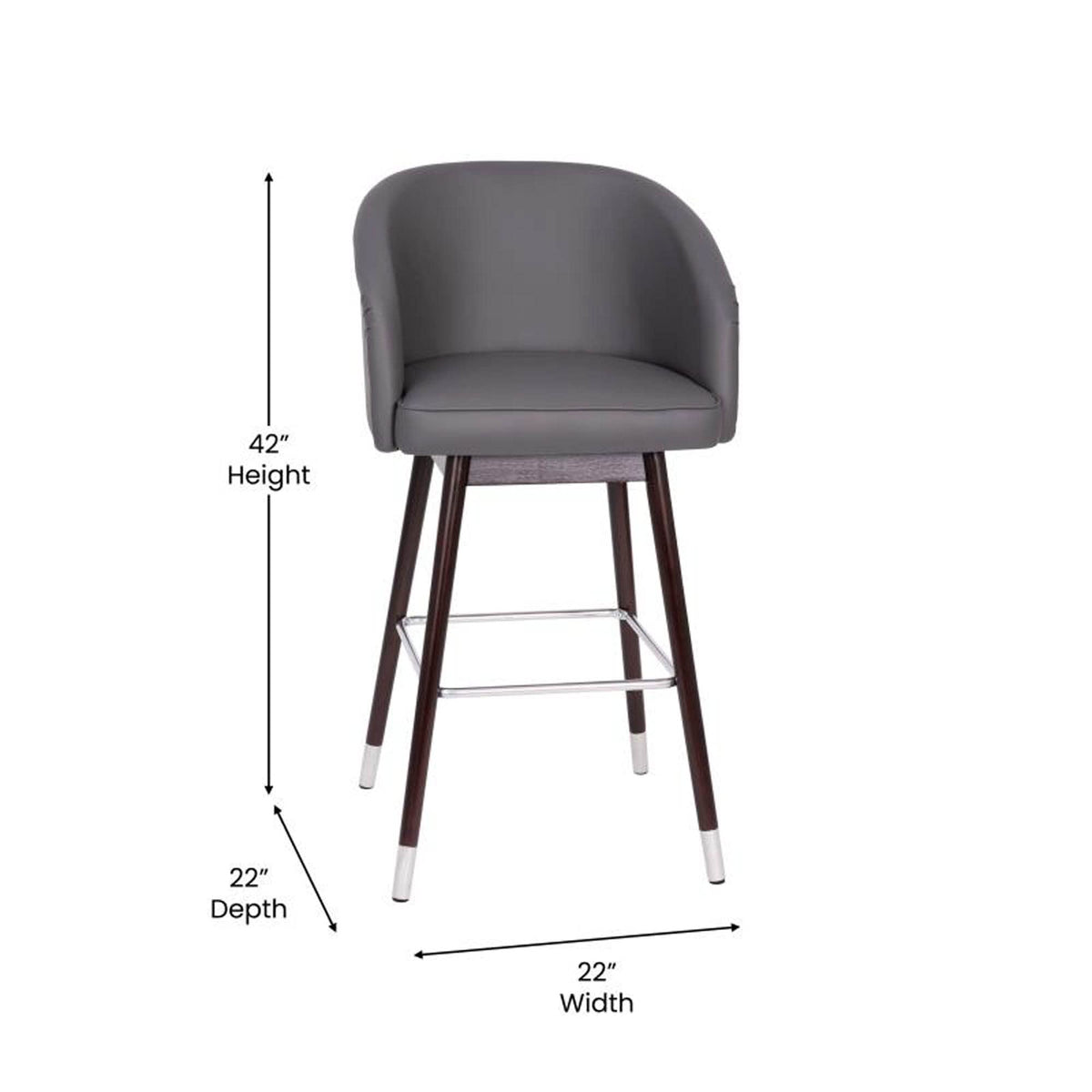 Flash Furniture Margo Commercial Grade Mid-Back Barstool - Gray Leathersoft Upholstery - Walnut Finish Beechwood Legs With Brushed Silver Accents - 30' Bar Stool