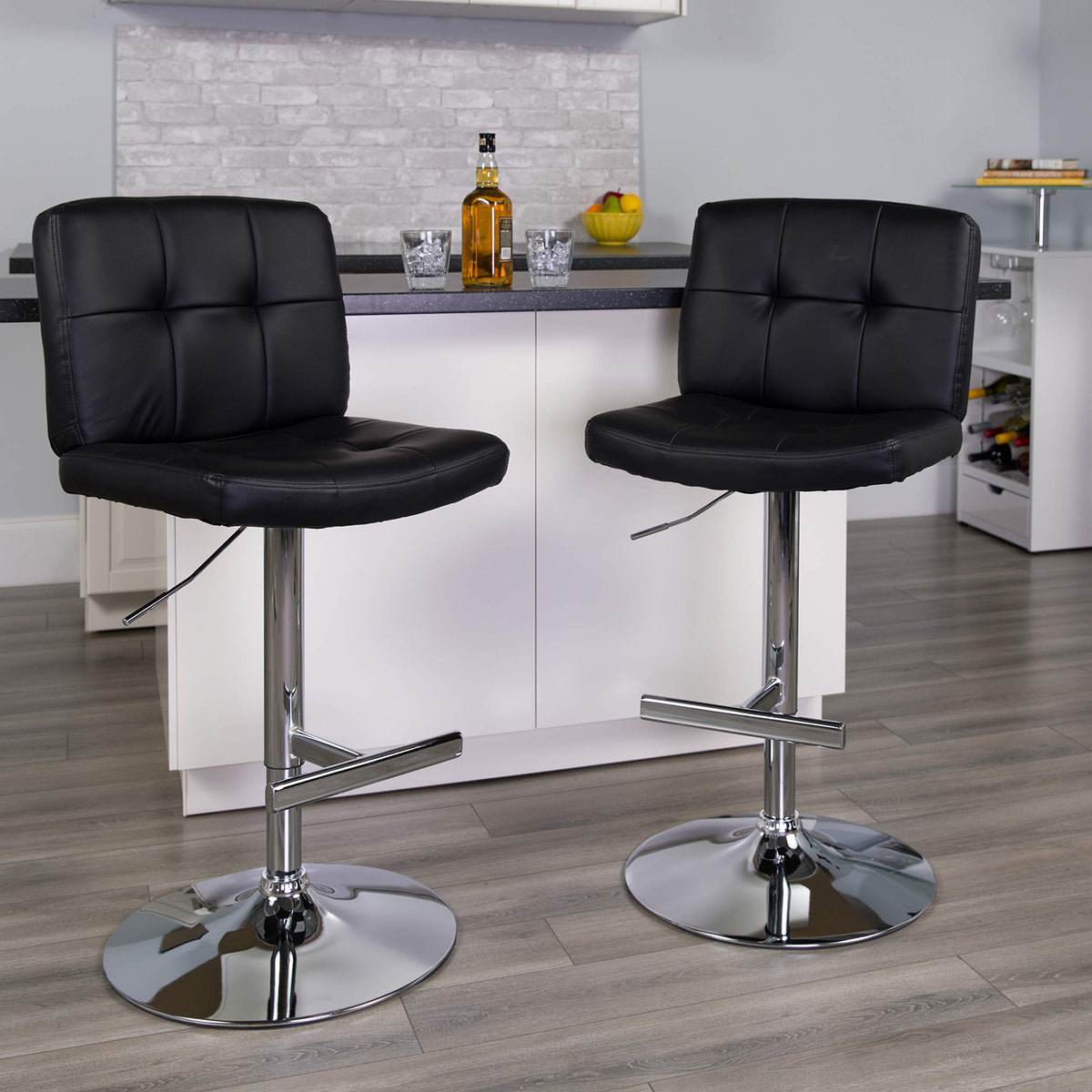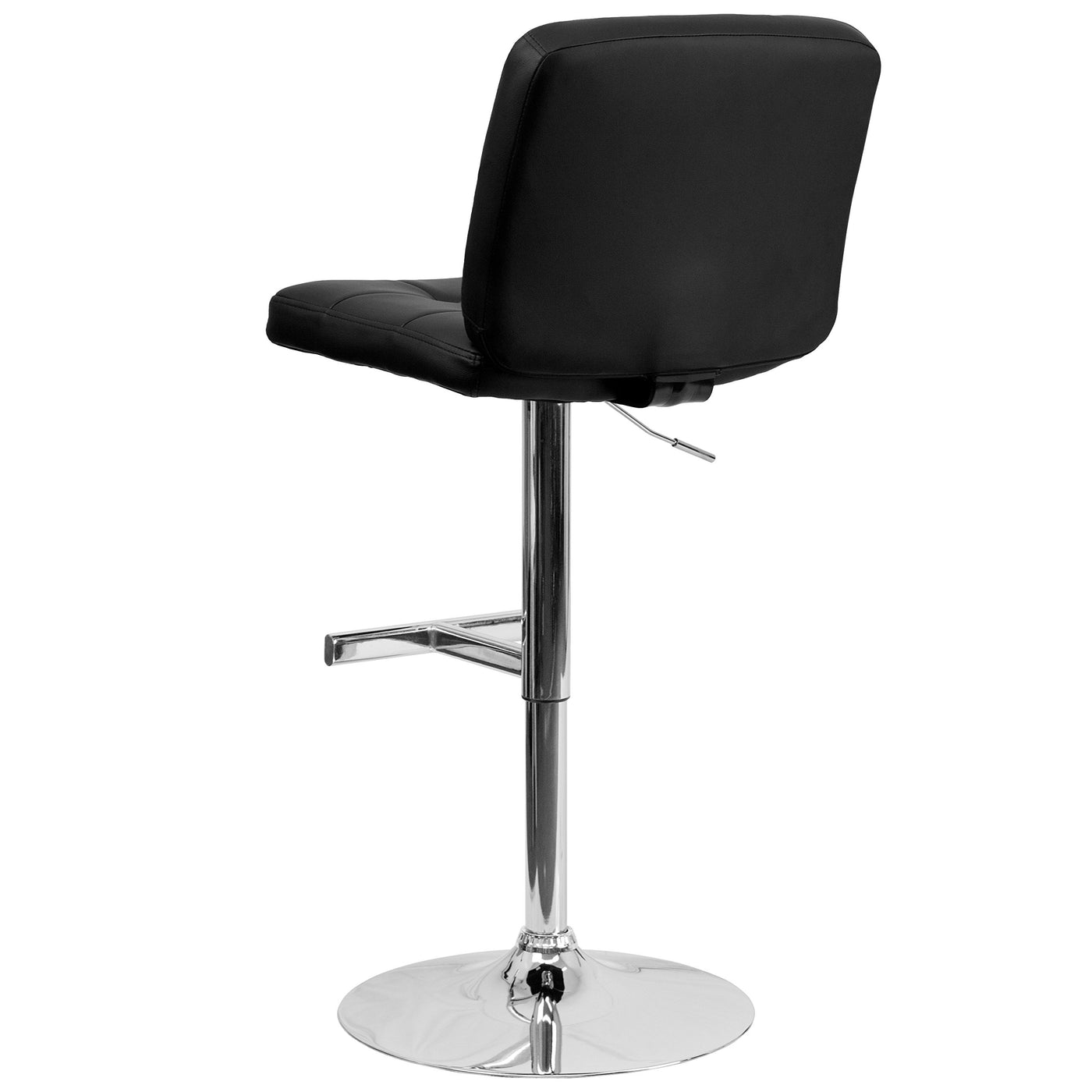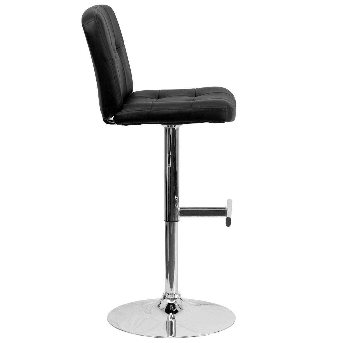 Whether you're furnishing a kitchen or home bar, this black adjustable height bar stool is an attractive and economical choice. With its tufted detailing, this adjustable height barstool will make a lovely contemporary accent to your kitchen, dining, or bar area. The height adjustable swivel seat adjusts from counter to bar height with the handle located below the seat. The base and footrest have a chrome finish to complement the chair's modern design. To help protect your floors, the base features an embedded plastic ring.