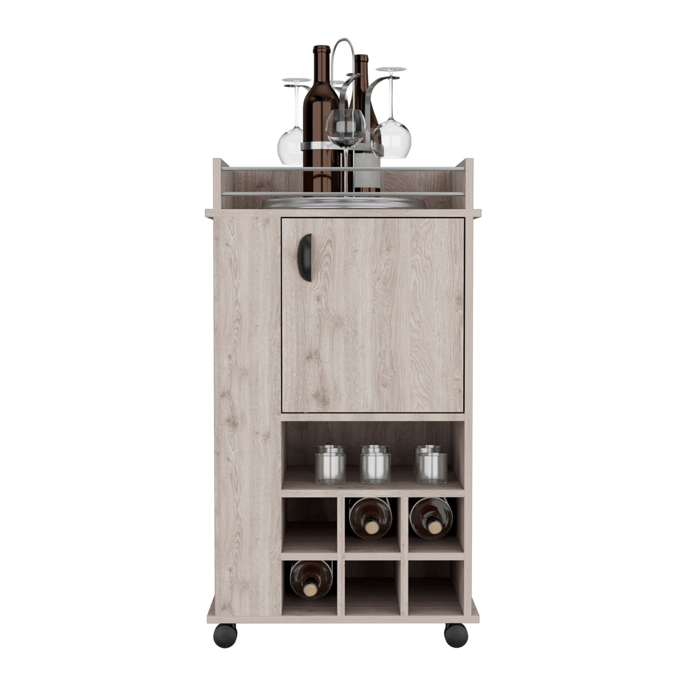 Fraser Bar Cart With 6 Built-In Wine Rack And Casters, Light Gray