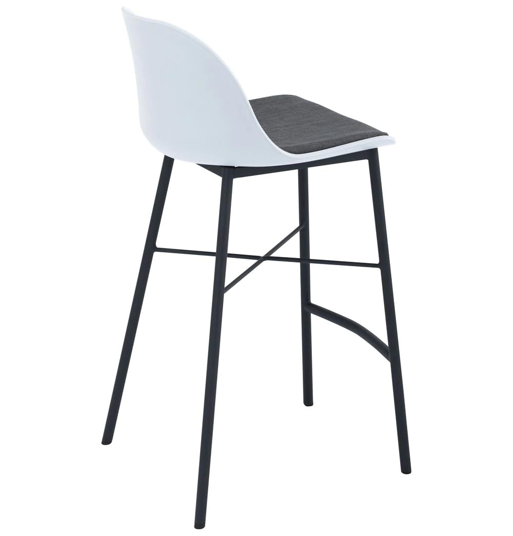 Laxmi Counter StoolMaterial/Color: Whiteandplastic seat Battleship grey cushion Black metal baseDimensions:andW 47cm x D 52cm x H 92.5cm and SH 69.5cmand