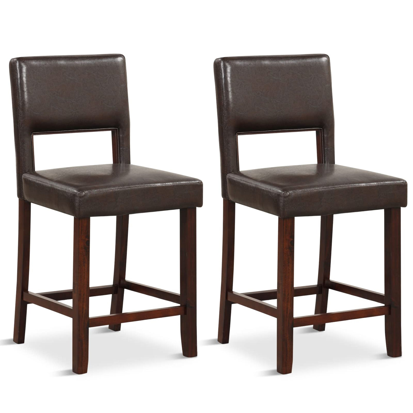 Giantex 24.5' Counter Height Bar Stools Set Of 2, Pvc Leather Barstools With Back, Rubber Wood Legs, Max Load 400 Lbs, Modern Upholstered Bar Dining Chairs For Kitchen Island Pub, Brown