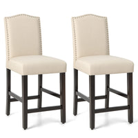 Giantex Bar Stools Set Of 2, 25' Counter Height Bar Dining Chairs With Rubber Wood Legs, Footrest, Max Load 330 Lbs, Nailed Upholstered Barstools With Back For Kitchen Island, Beige