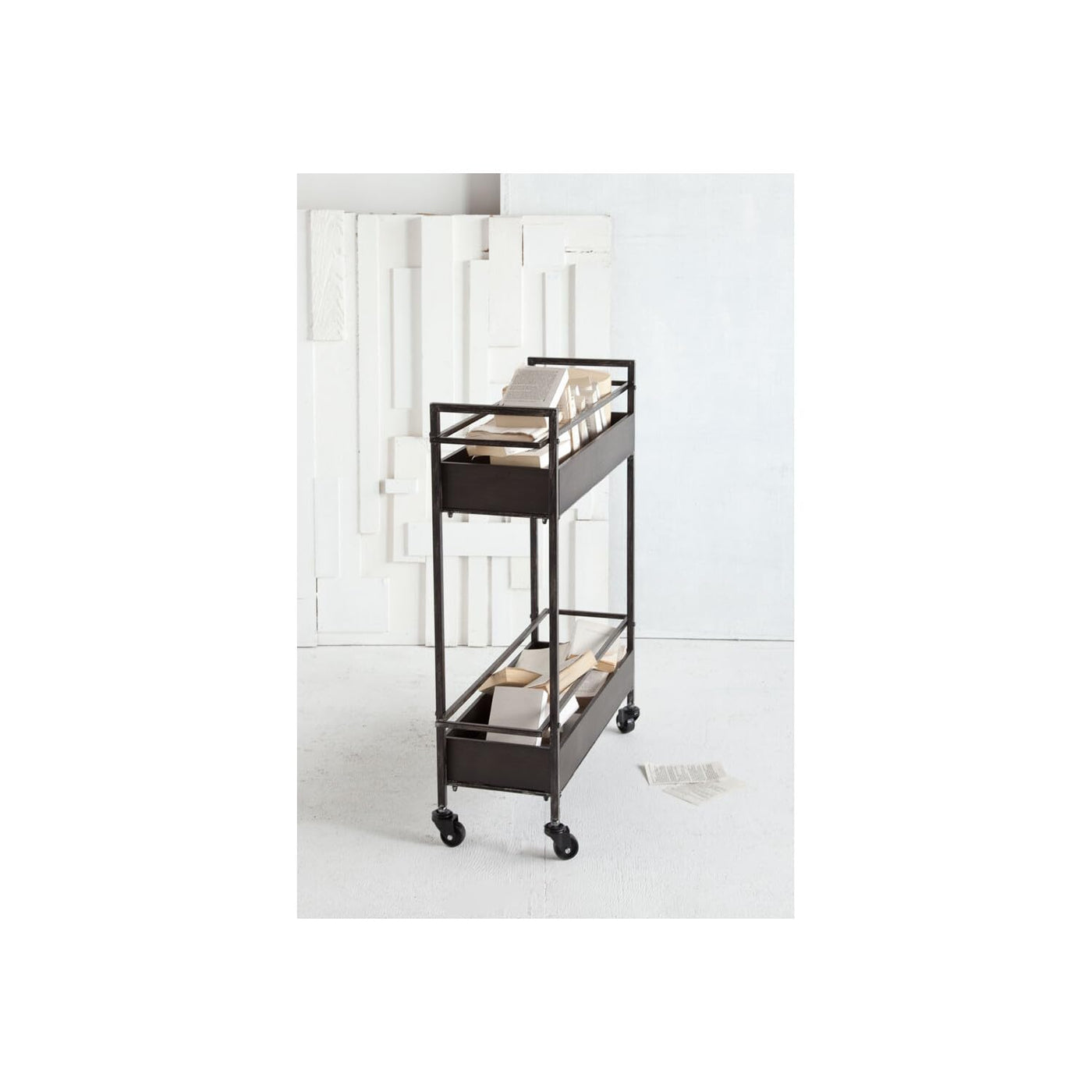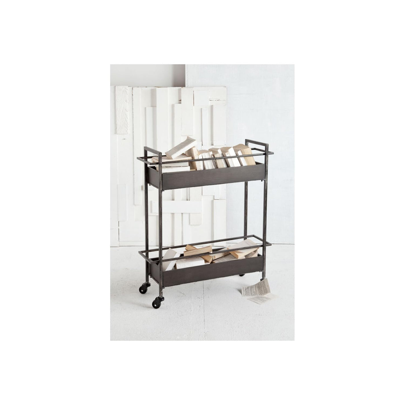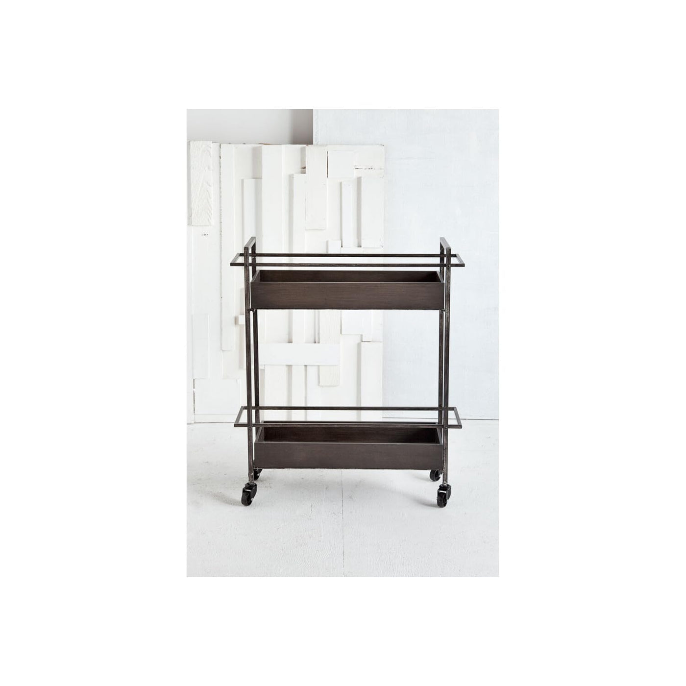 Gray Metal Rectangular with Two-Tier Shelves Bar Cart