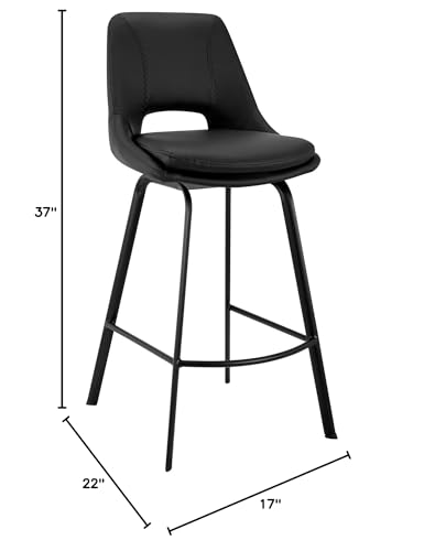 Beyond being a fine piece of furniture, this elegant 26-inch black faux leather and black metal armless swivel stool is a classic piece of art. Place this stool anywhere in your home and enjoy an update of class, style and comfort to any existing decor you already have there. This stylish stool is a great way to enjoy both practicality and design, with its 180 degree swivel effect a perfect example of how you can enjoy the former while the soft foam padding on soft faux leather upholstery exemplifies what what the latter really means. The modern ergonomic design of the armless seat has an oval opening in the backrest that adds breathability and visual interest to the seat. The structure rests on a metal frame that has a practical footrest that provides support for your legs while sitting. 37' x 17' x 22'
