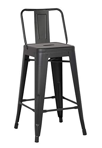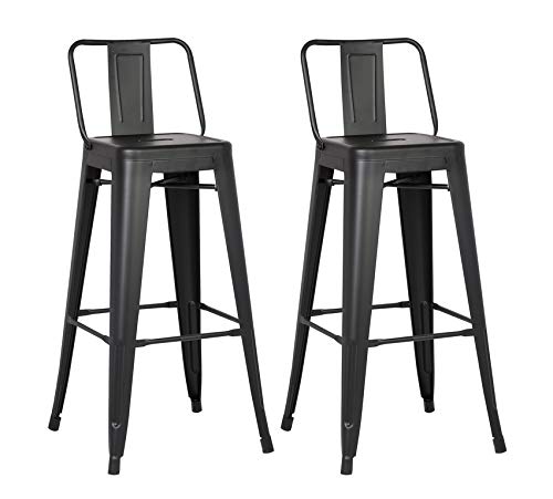 HomeRoots 30' Matte Black Metal Barstool with Back in A Set of 2