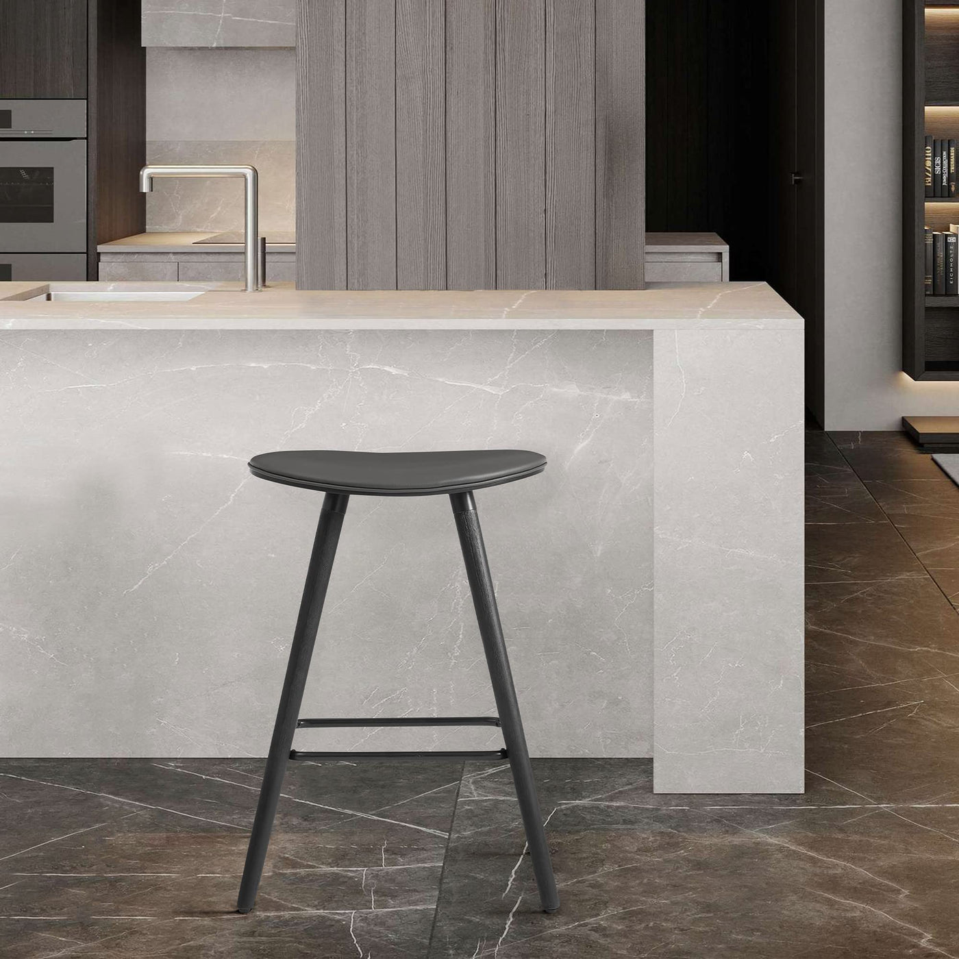 Build a small lounging lounge area in your home with retro elements centered around this gray faux leather backless black wood bar stool. The stool has a versatile look that shows a fabulous aura in any modern or contemporary kitchen, living room or office. Professionally made with bent wood for the legs, faux leather for the seat, and a metal footrest, the stool is very sturdy and made to last for years. The trout gray faux leather seat is beautifully paired with a matte black tone wood base for a modern touch with farmhouse appeal. Perfect for having a coffee, the cushions are densely padded with a premium foam and the base is weighted to prevent any rocking. Update the aesthetics of your home with the elegant and elegant impression that this stool brings. 26x19x13