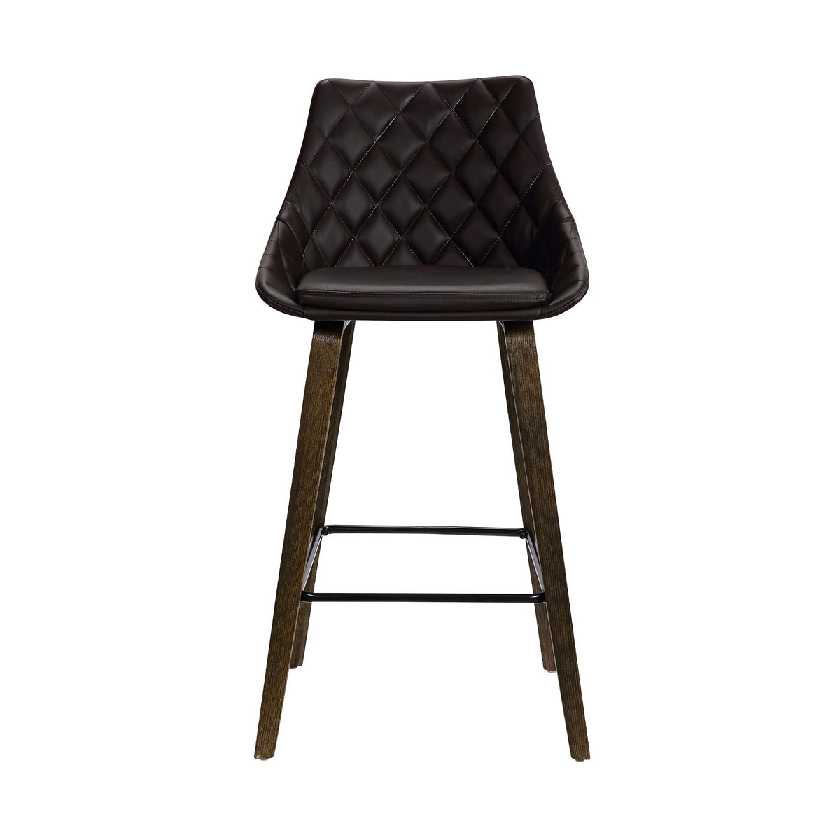 Inspire a look of timeless elegance in your home with the transitional qualities of this tufted brown velvet upholstered stool. The stool displays a gorgeous look with the right colors and shape to blend seamlessly into your interior aesthetic. Made with a steel base, padded fabric upholstery, and plywood accents, the stool provides maximum comfort and a solid place to rest. The tufted velvet faux leather upholstery comes in dark brown with a wood frame in a walnut glaze finish giving the piece a traditional, luxurious look with a vintage feel. The effortless beauty of this bar stool is the perfect addition to your modern or traditional home to captivate your guests during an evening gathering. 35.75 x 19 x 19 inches
