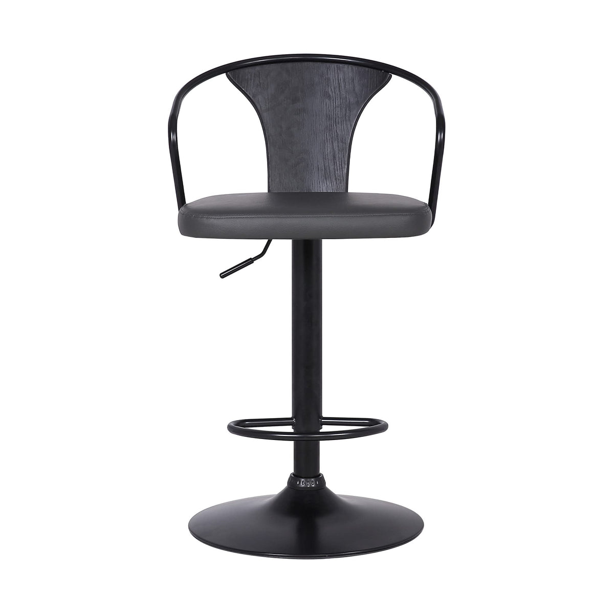 HomeRoots Black Steel,Faux Leather,Plywood Gray Faux Leather & Metal Base Adjustable Bar Stool