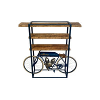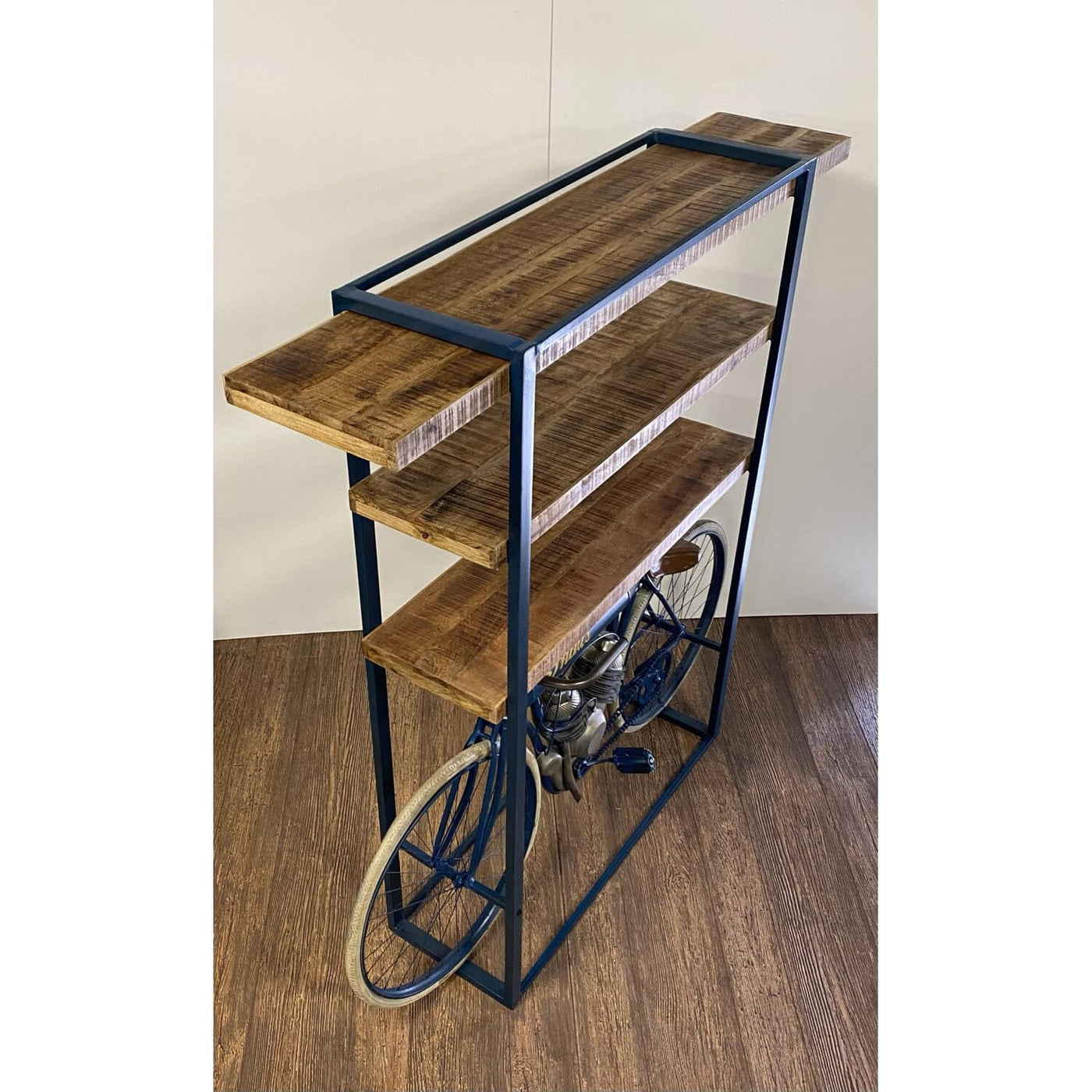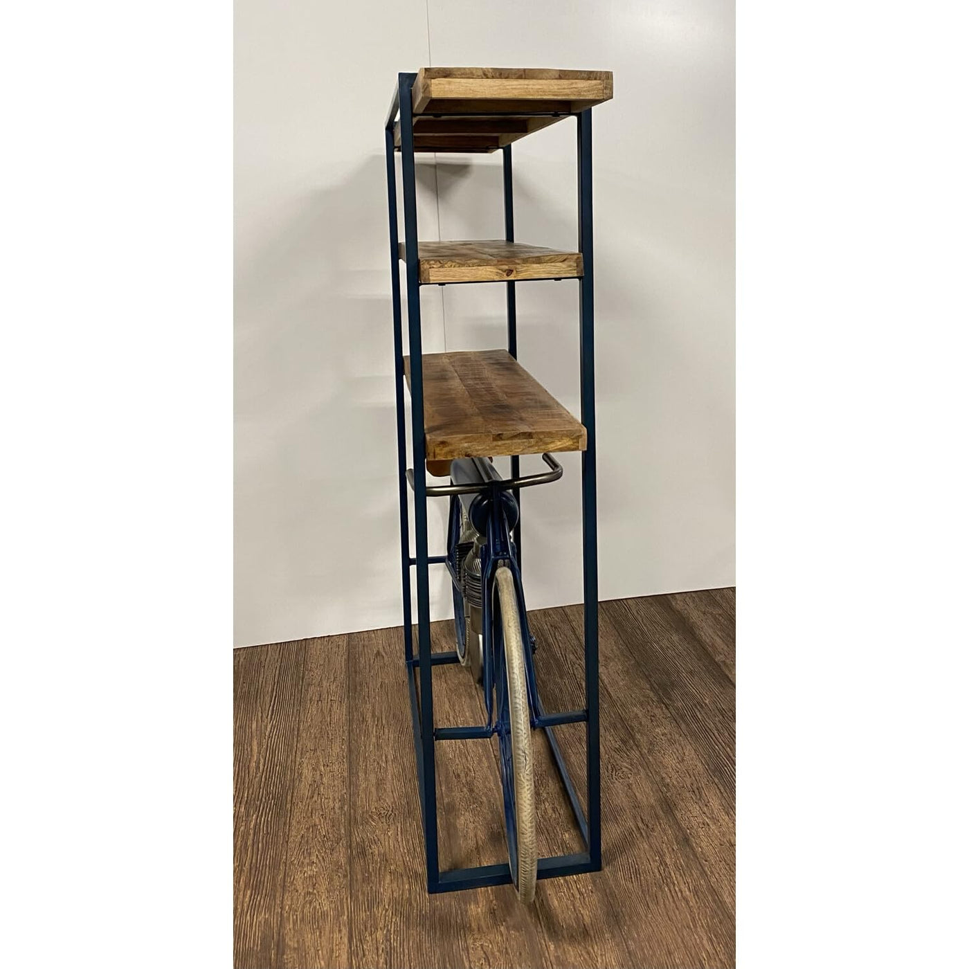 HomeRoots Blue Metal Mango Wood Cycle Book Shelf Bar Counter