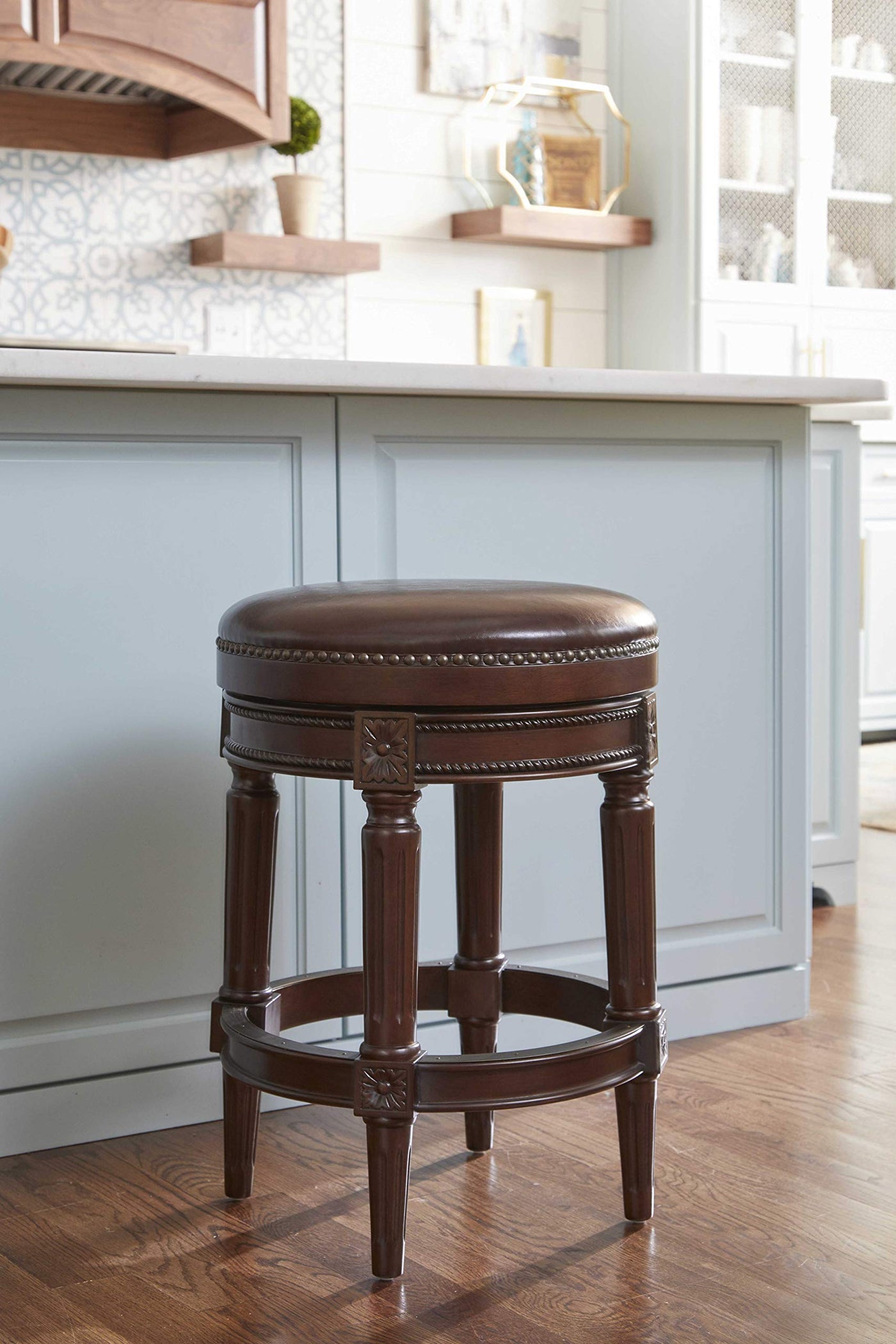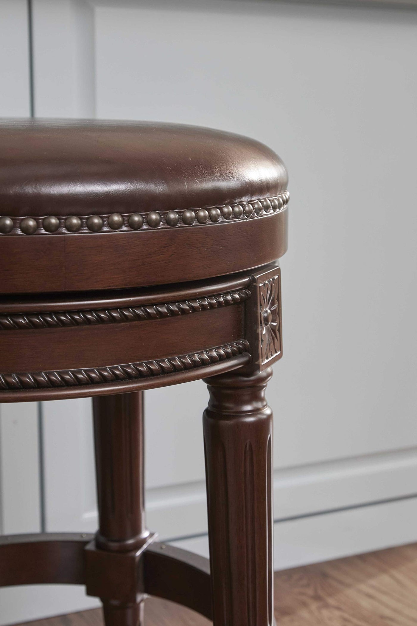 Perfect for the modern home or rustic bar the backless bar height stool pairs perfectly with the quiet ambiance of your home Sleek and sturdy in design the Chapman backless bar stool come with a full swivel seat for easy accessibility Easy to assemble and clean a pair of these barstools is exactly what youve been looking for Features. Hand Applied Nail Heads. Farmhouse White Wash Finish. Nickel AccentsSpecifications. Color Distressed Walnut. Construction Sturdy. Assembly Required Yes. Dimension 255 H x 185 W x 185 D