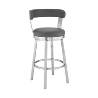 HomeRoots Gray 26' Chic Grey Faux Leather with Stainless Steel Finish Swivel Bar Stool